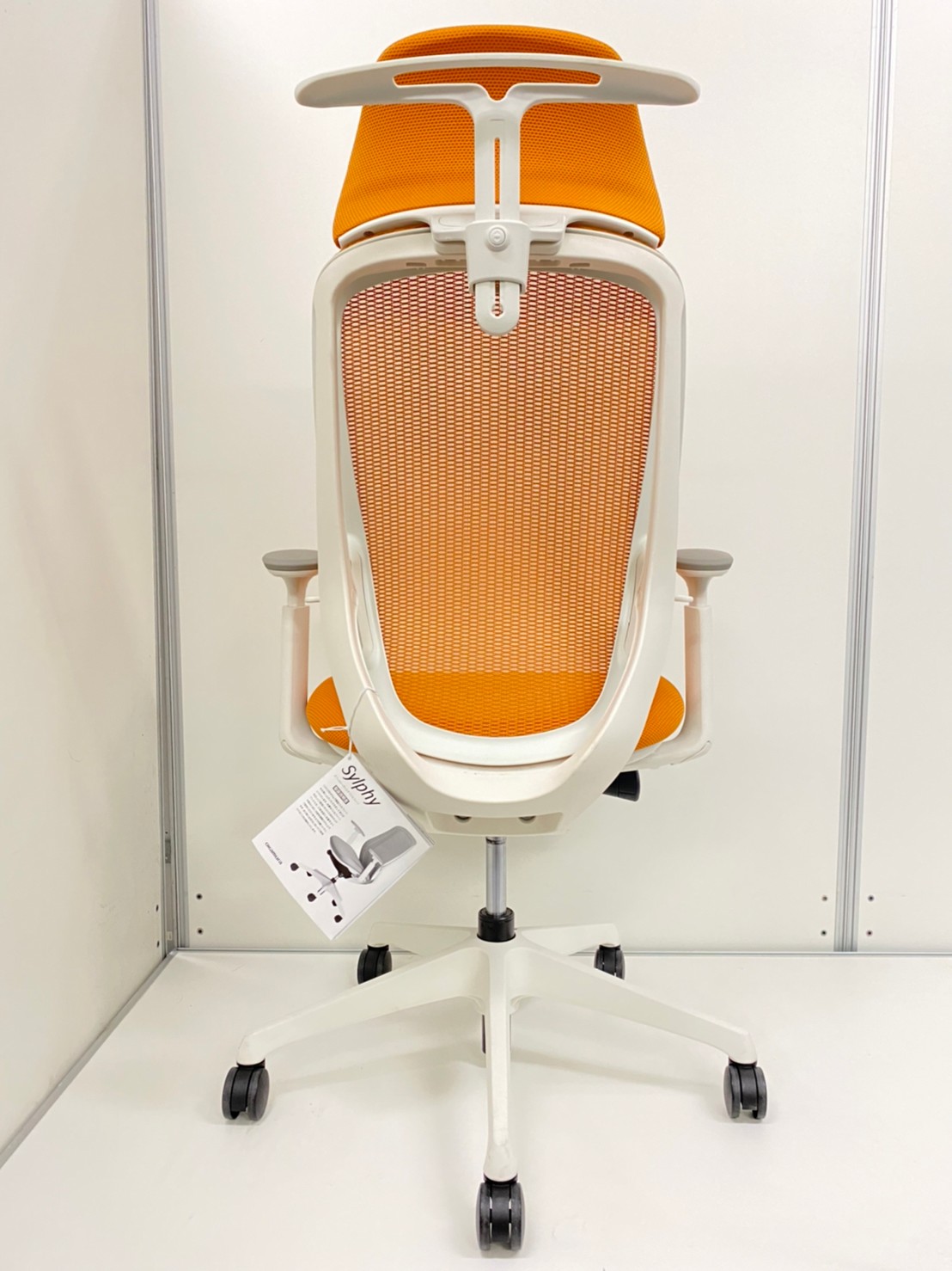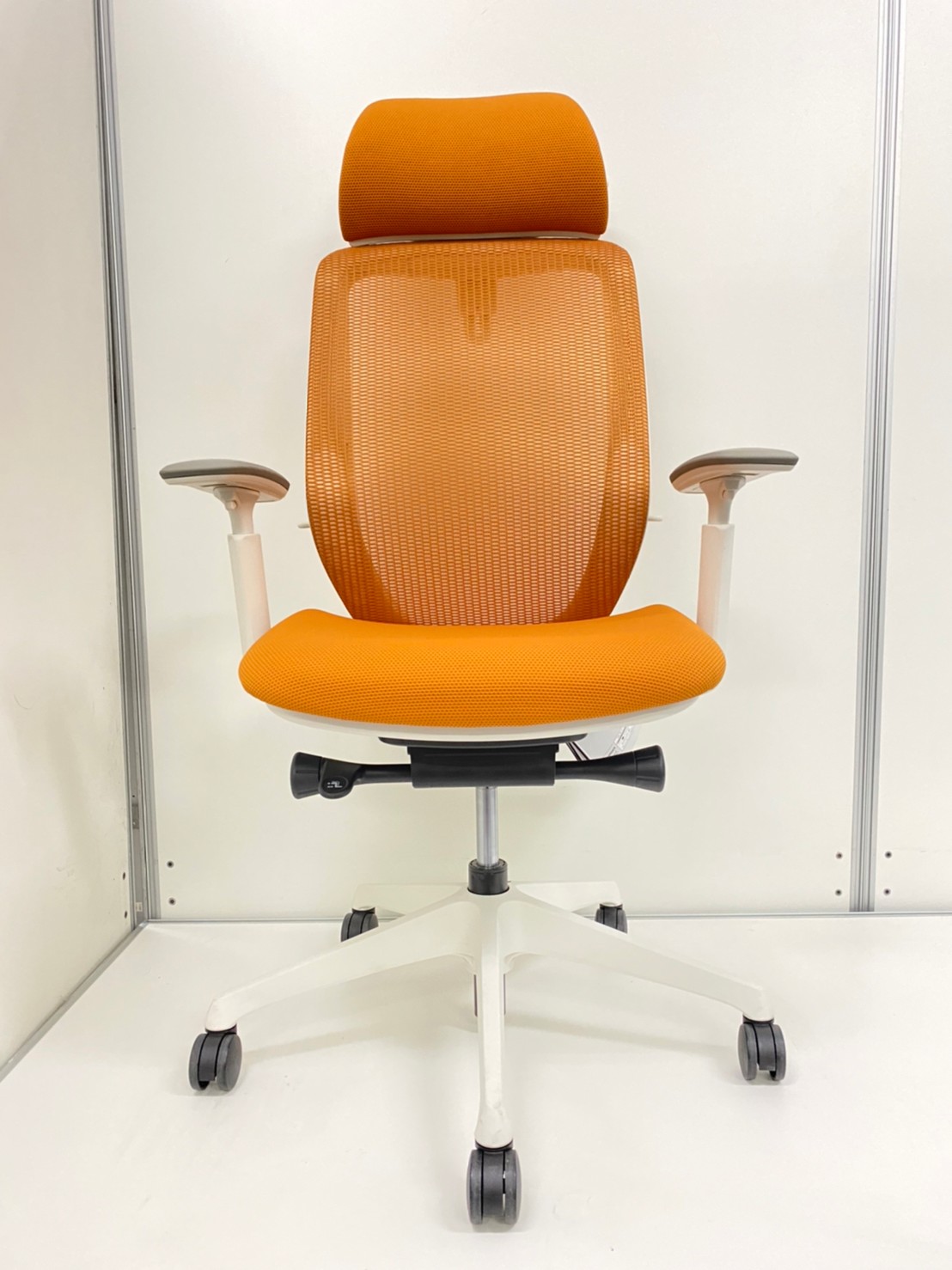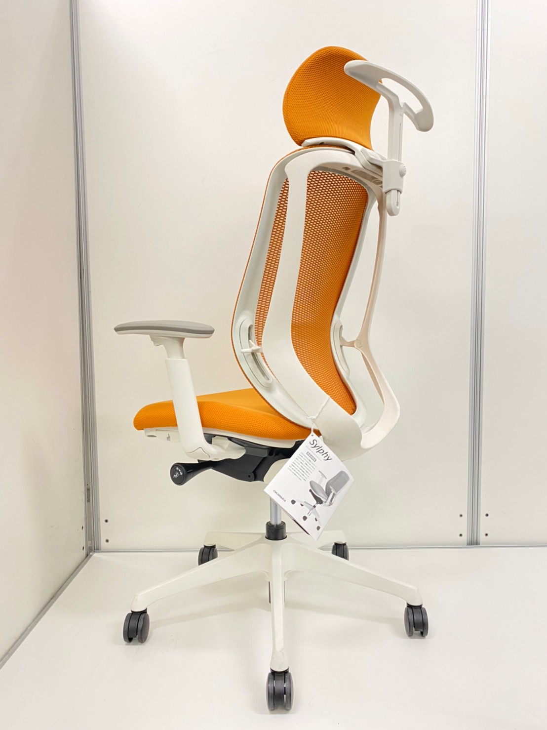 【2脚限定!!】【前傾姿勢の代名詞】オカムラ社シルフィーチェア!中古 高級チェア 前傾姿勢 メッシュチェア ハイバックチェア オフィスチェア テレワーク用 シルフィー オレンジ【ヘッドレスト新品!!】- 大阪・堺店