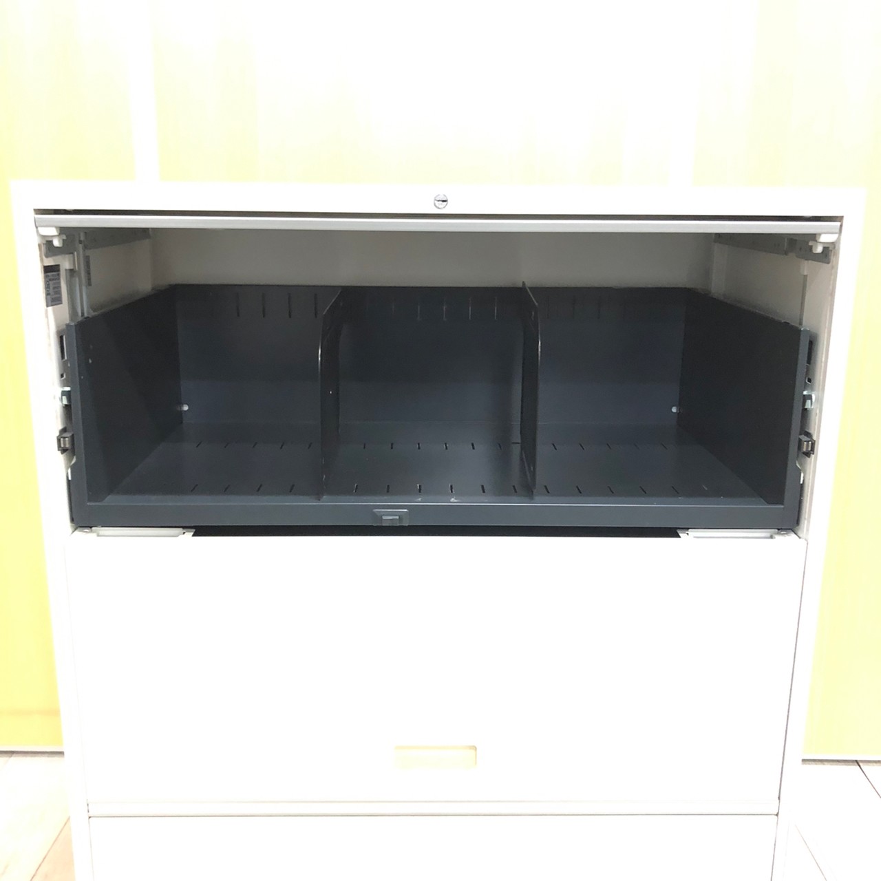 - 多数不具合あり引出の開閉不可、施錠不可、棚板無しといったその書庫の本来の効用を果たすための機能以外の多数が使用不可(例、扉、引出の開閉がしづらいなどがある。 )