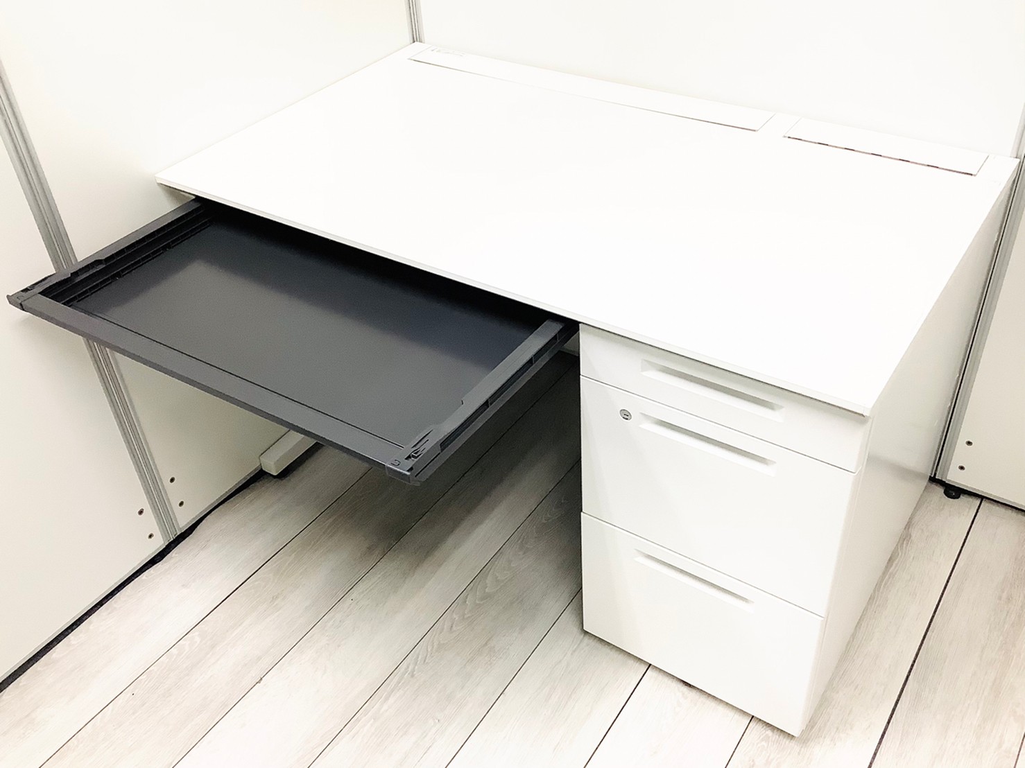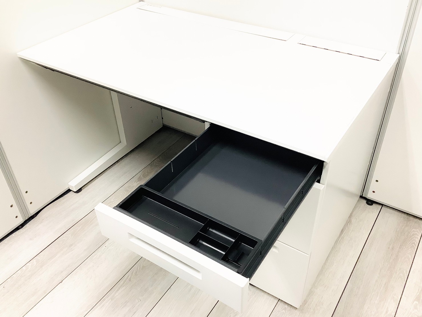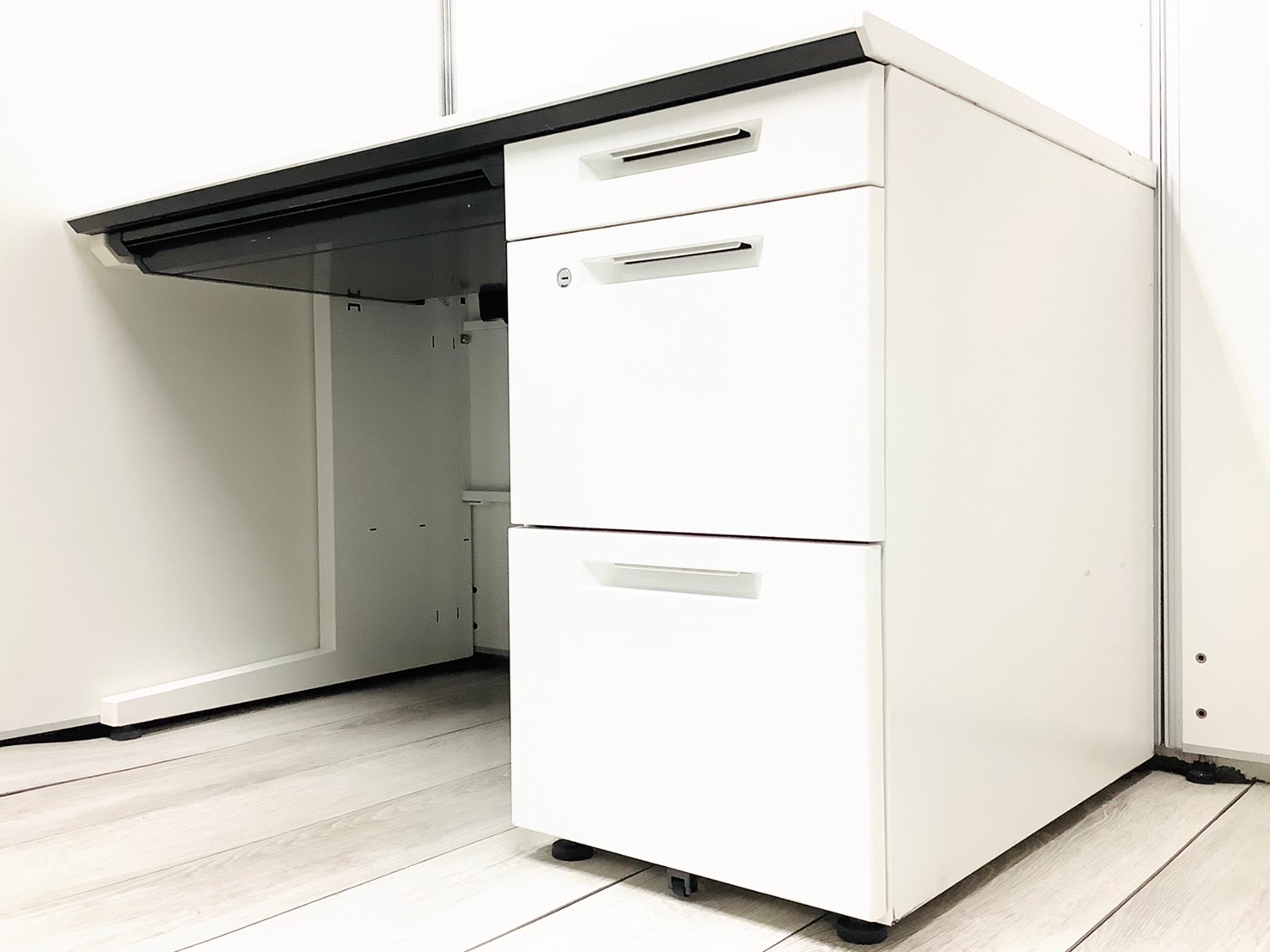 コクヨ isシリーズ 疑似的な片袖机(平机+2段ワゴンのセット) ホワイト センター引出し付 デスクとワゴンを別々にすることでフレキシブルな使い方に【愛知・名古屋・豊田・静岡・浜松】