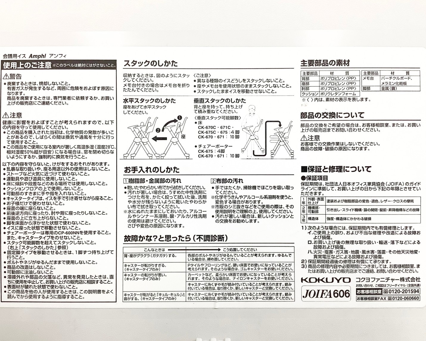 【6脚=1セット(10%OFF)大人気/定番/品質良好 ◆KOKUYO/コクヨ ◆Amphi/アンフィ ※横浜本店撮影画像※- 横浜本店