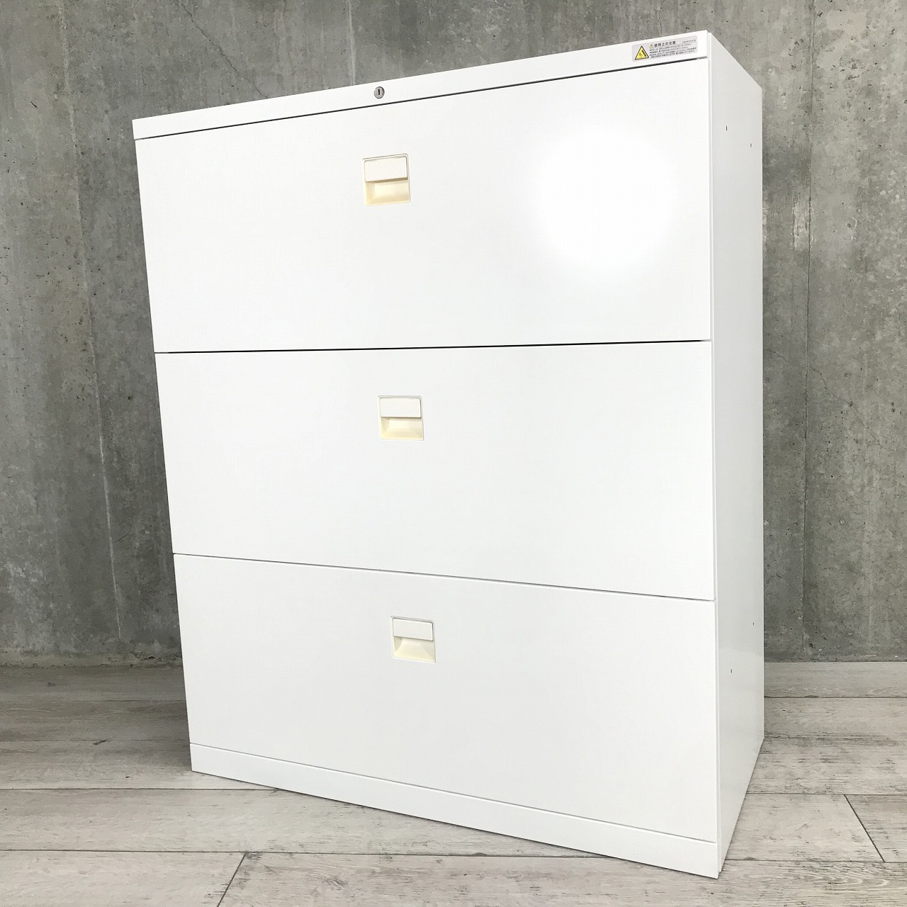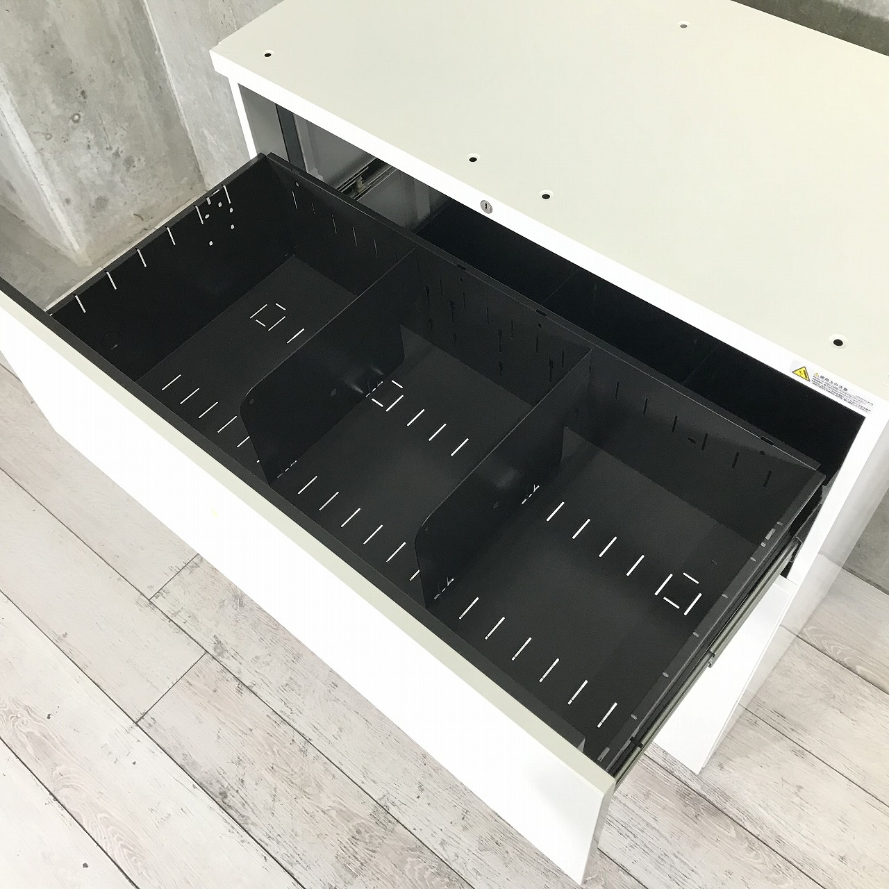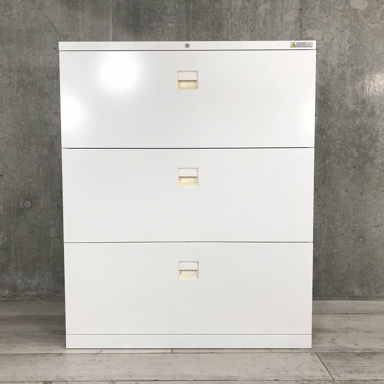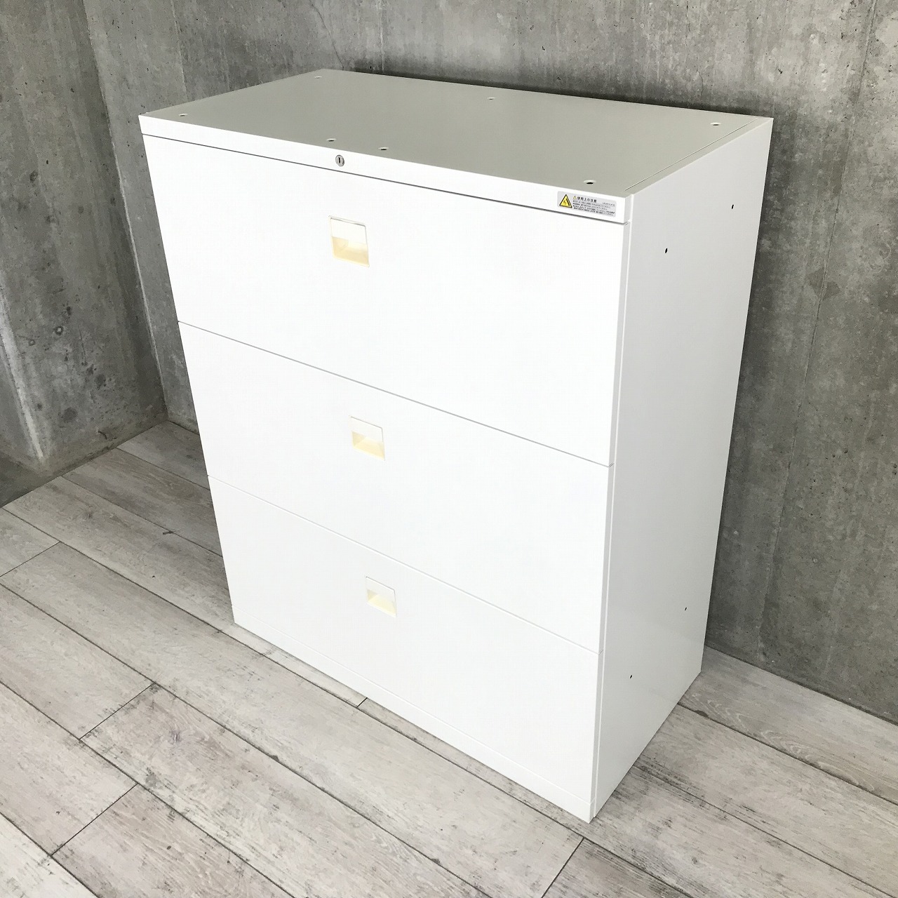 【定番の3段ラテラル(引き出し)タイプ!取っ手部分日焼け有の為、お安くご提案!!】オカムラ(okamura)/SAシリーズ/3段ラテラル(引き出し)/ホワイト- 埼玉本店