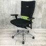 【人間工学に基づいた快適な座り心地! 背あてのしなやかな曲線が背中にフィット!】■オカムラ製 フィーゴチェア (feego) 肘付ハイバック シームレスタイプ ■肘付 ■ブラック×グリーン ■固定肘