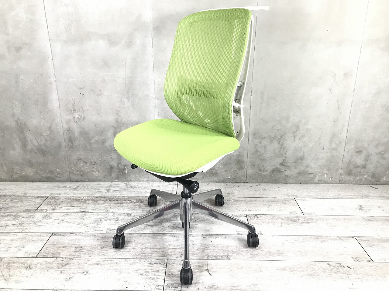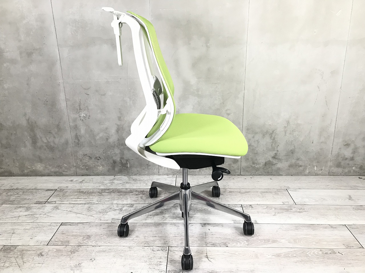 弊社一番人気のシルフィチェア!前傾機能・ランバーサポート付で腰痛対策におすすめ!■オカムラ/シルフィ/ライムグリーン- 新大阪店