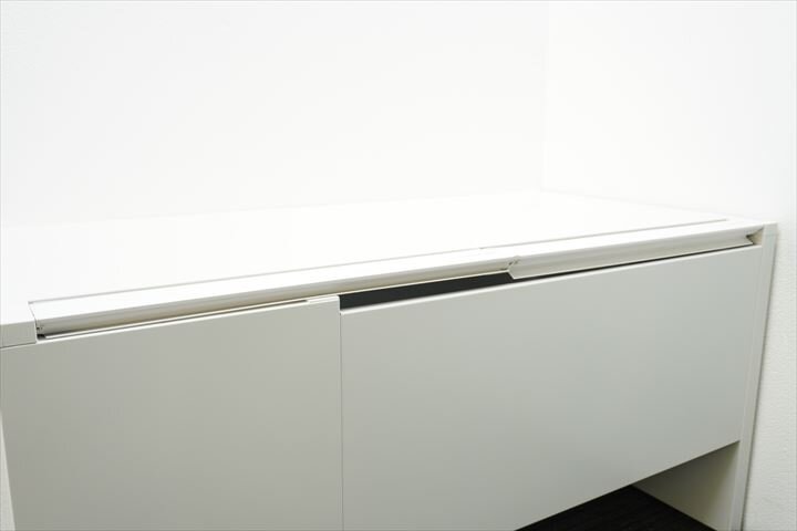 天板奥に配線ダクトが設けてありますので、気になる配線類をスッキリとまとめる事が出来る商品となっております。