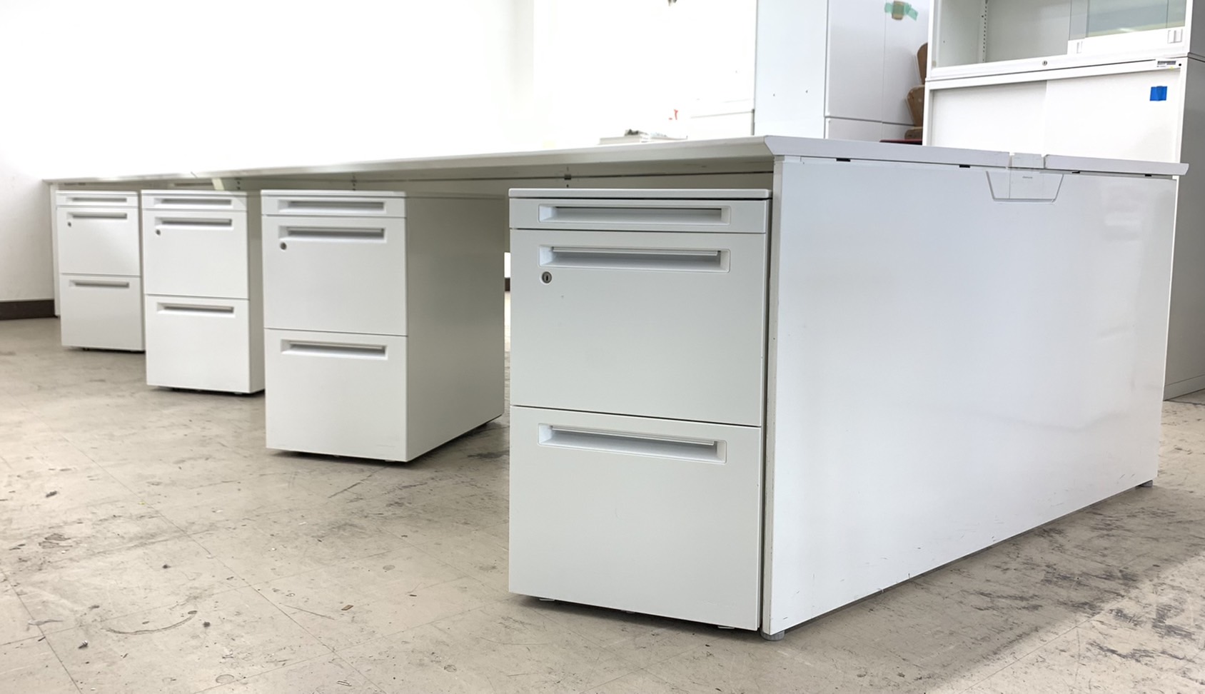 【幅4800㎜】レイアウト変更必須アイテムフリアドデスク※パネル脚ホワイト&ワゴン8台セット◆オカムラ製(MG99)【RP】- 埼玉本店