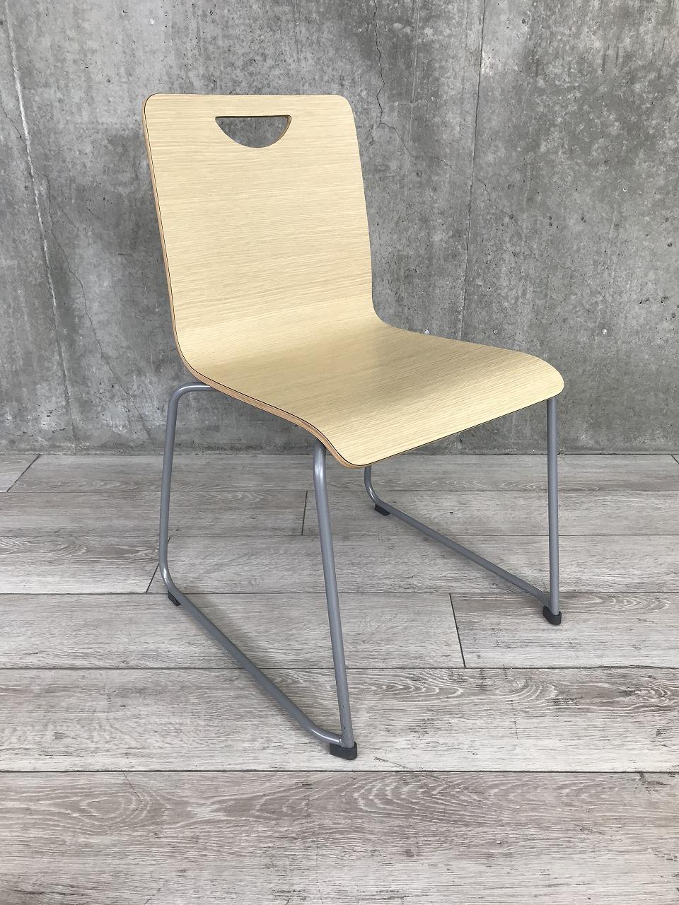 【接客用や休憩スペースに如何でしょうか!】オカムラ/スタッキングチェア/ナチュラル/キャスター無し- つくば店