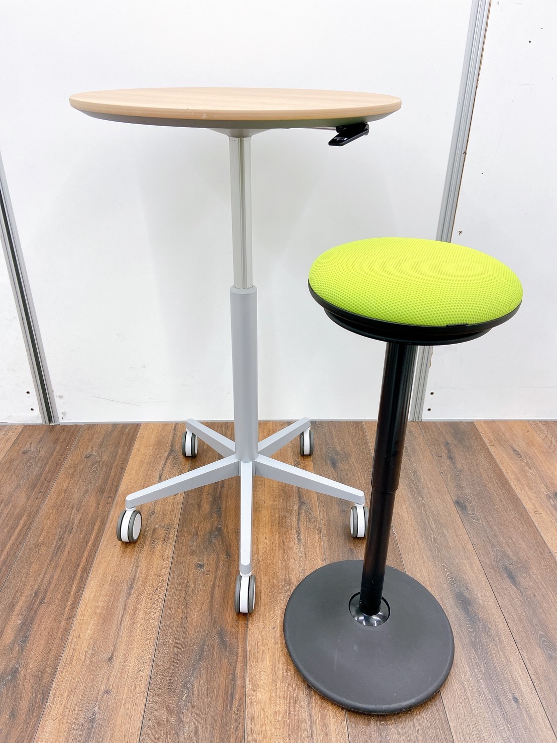 高さが選べるので、休憩・ミーティング用にハイチェアを合わせる事も可能です。