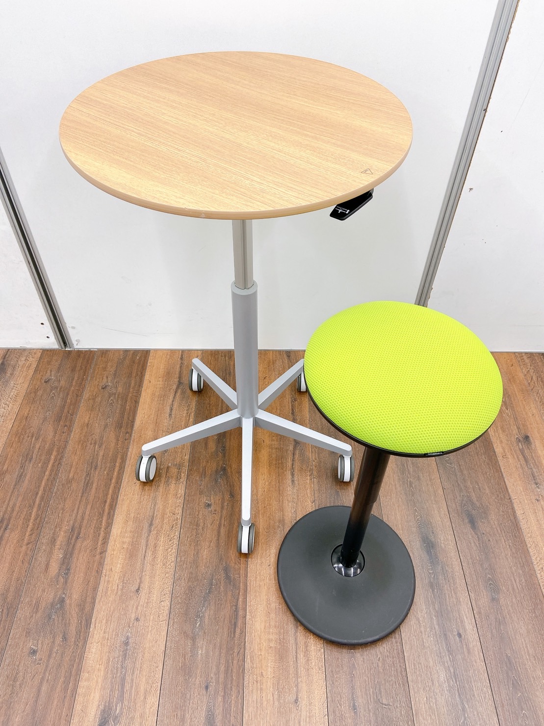 【オシャレなカウンターセット!リフレッシュスペースや窓際の休憩スペースにピッタリ〇】オカムラ(okamura)/丸テーブル(600mm)×ピルエットチェア- 埼玉本店