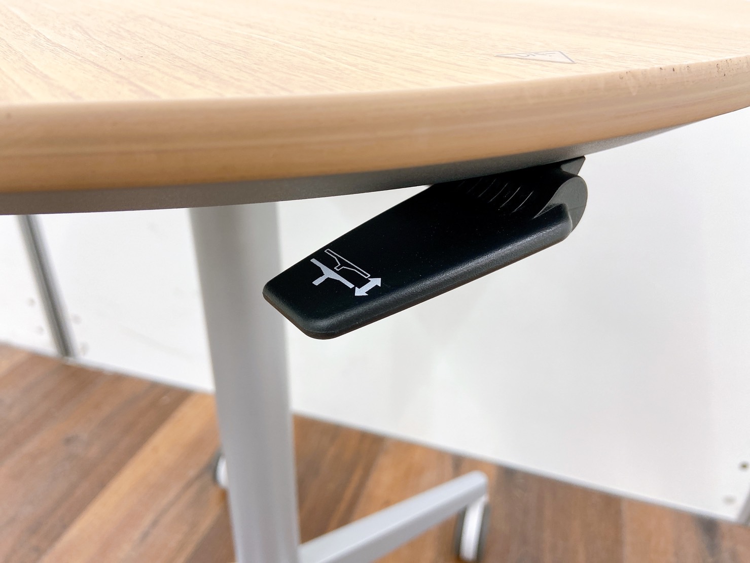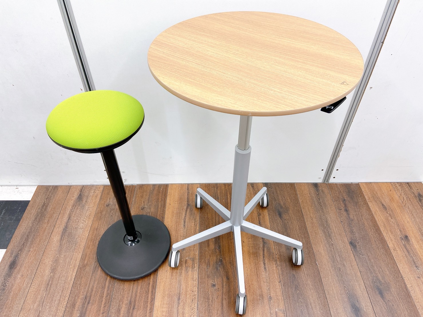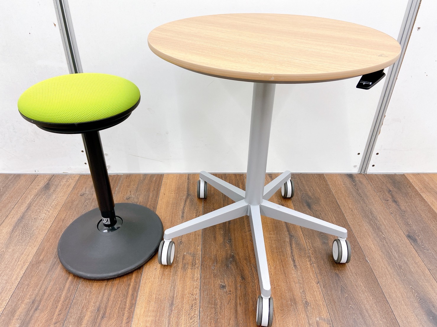 丸テーブルは中古では珍しい昇降可能且つキャスター付タイプになります!