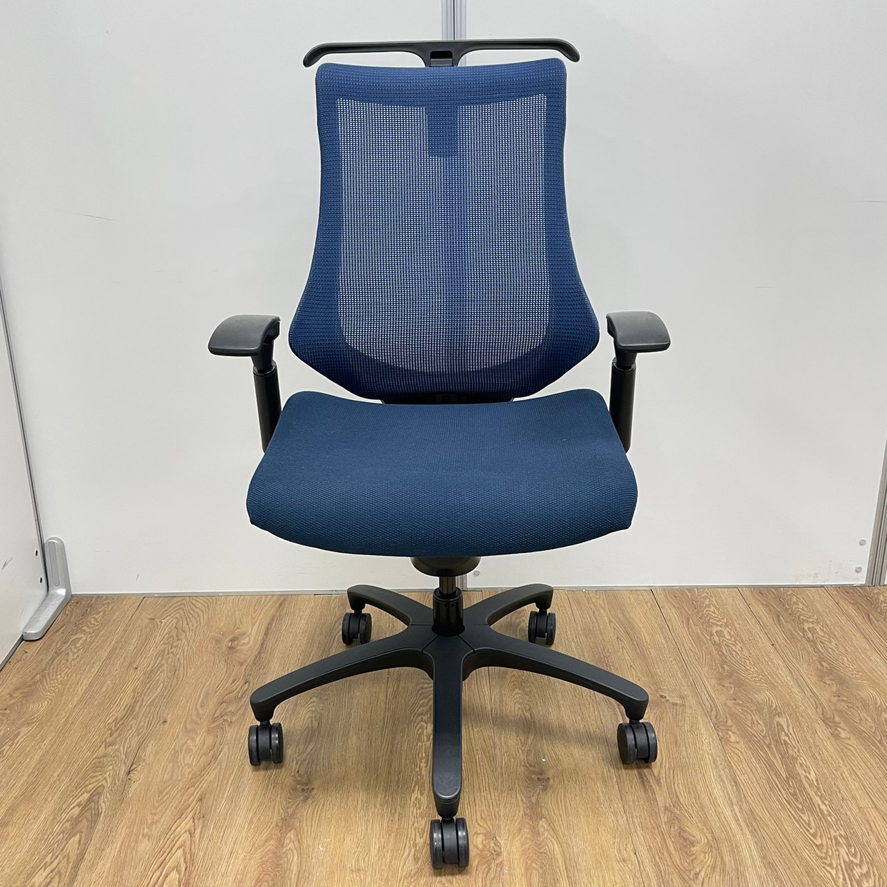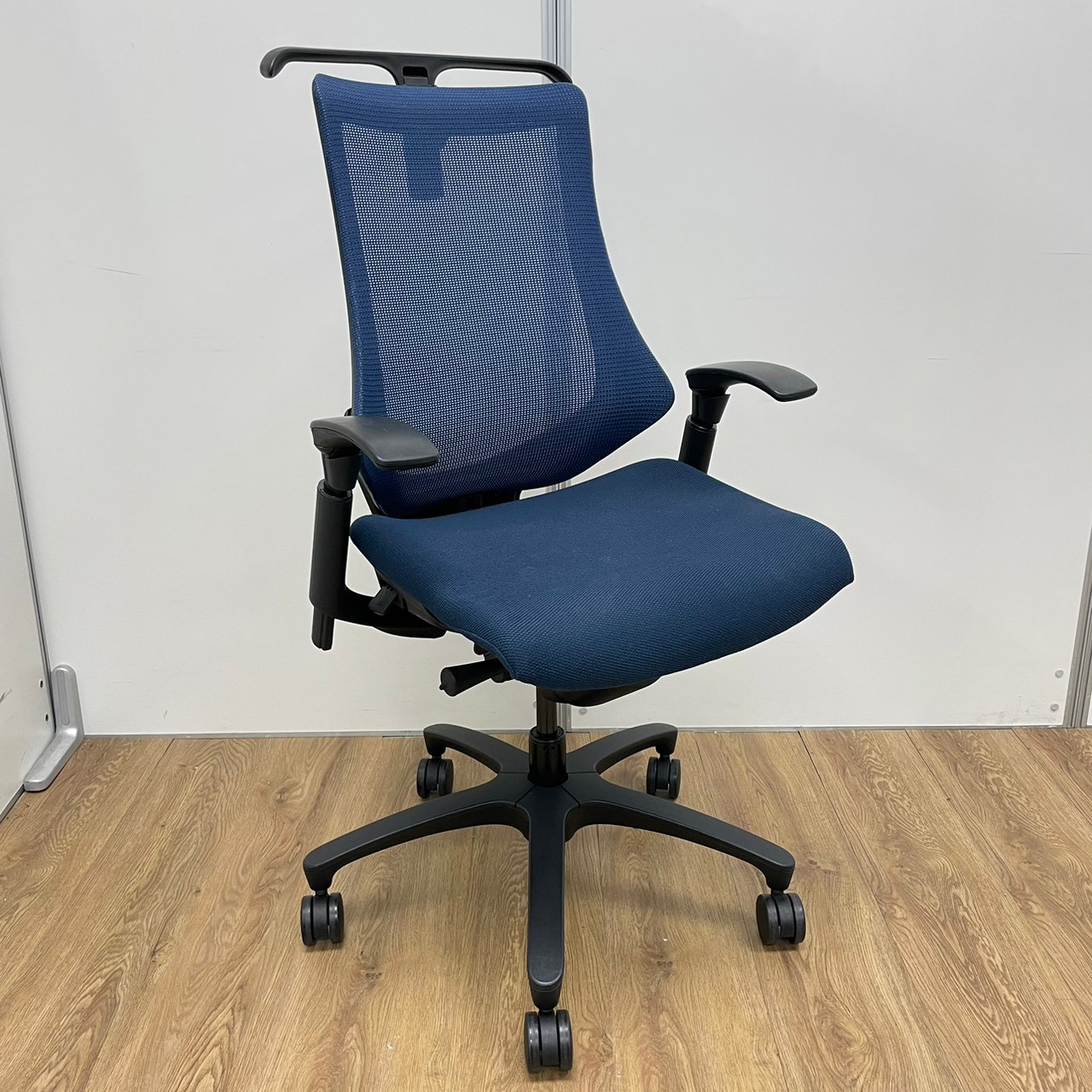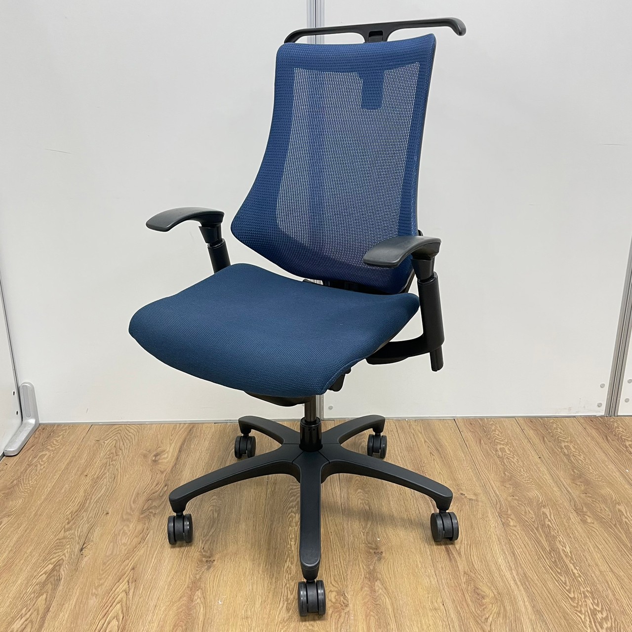 【1脚限定の為、クレジット決済優先!】【姿勢の変化にフレキシブルに対応!スタイリッシュで座り心地も抜群な高機能チェア!】■イトーキ(ITOKI)製 エフ(f)チェア 肘付き ハイバック 背面メッシュ ■可動肘 ■ネイビーブルー ×ブラックシェル