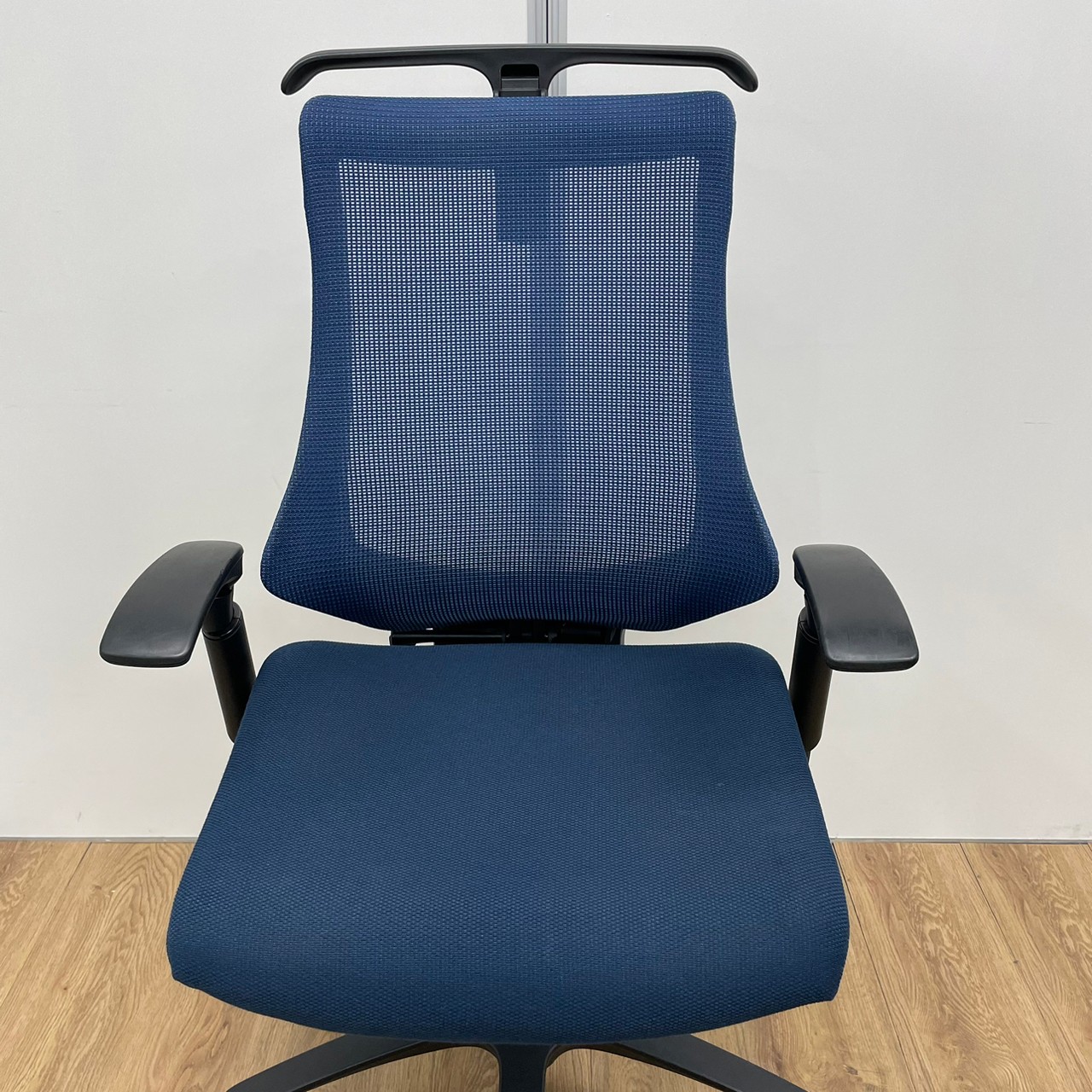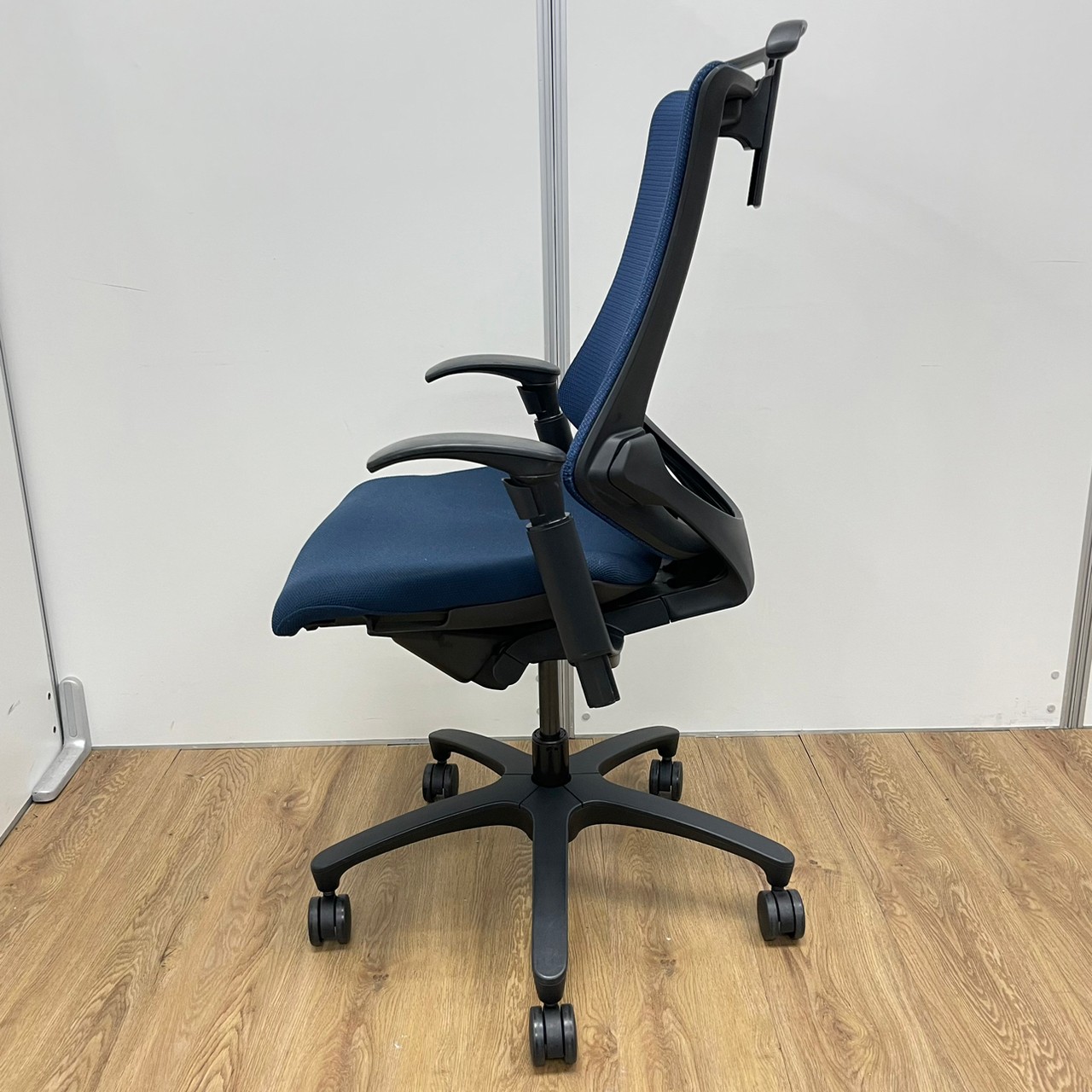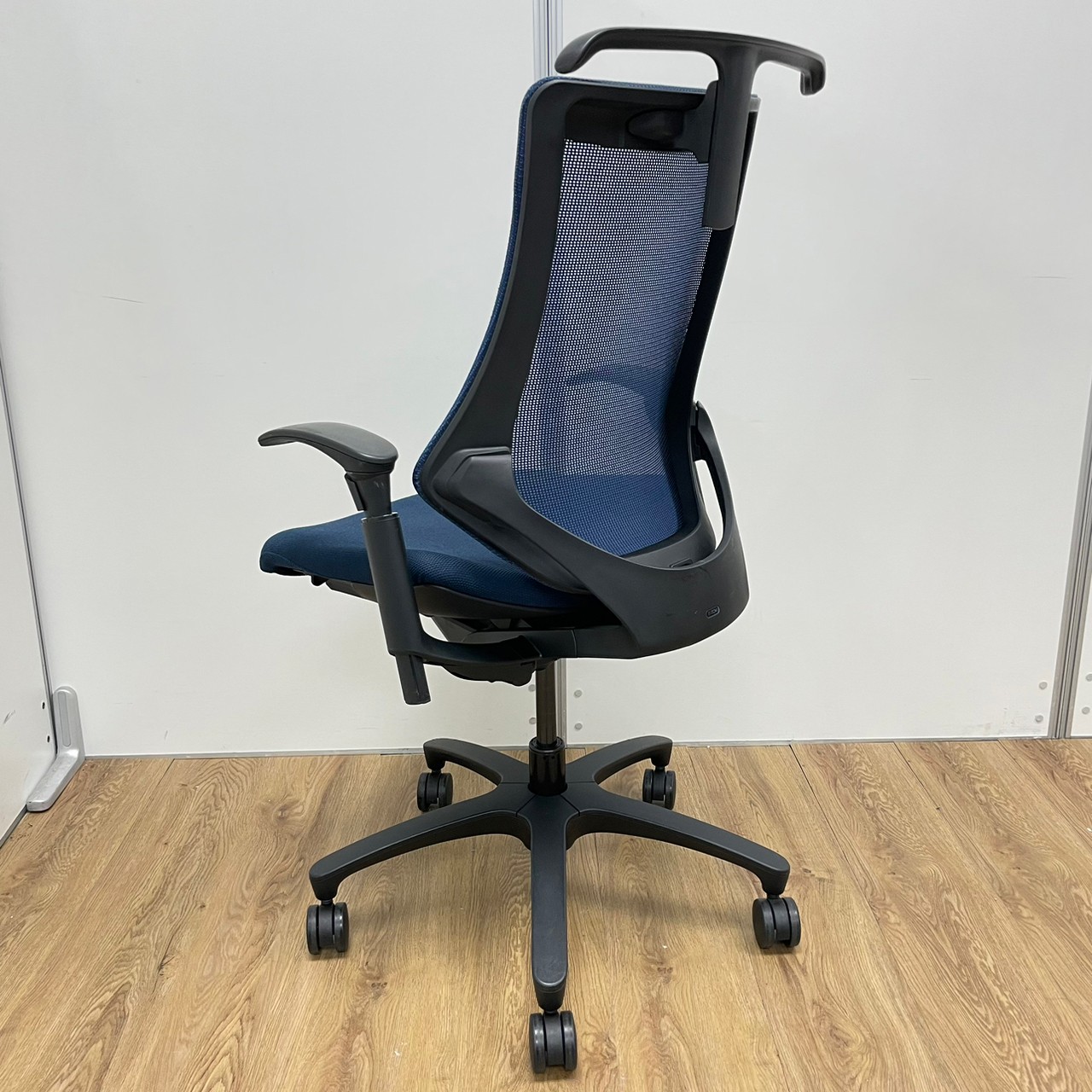 【姿勢の変化にフレキシブルに対応!スタイリッシュで座り心地も抜群な高機能チェア!】■イトーキ(ITOKI)製 エフ(f)チェア 肘付き ハイバック 背面メッシュ ■可動肘 ■ネイビーブルー ×ブラックシェル