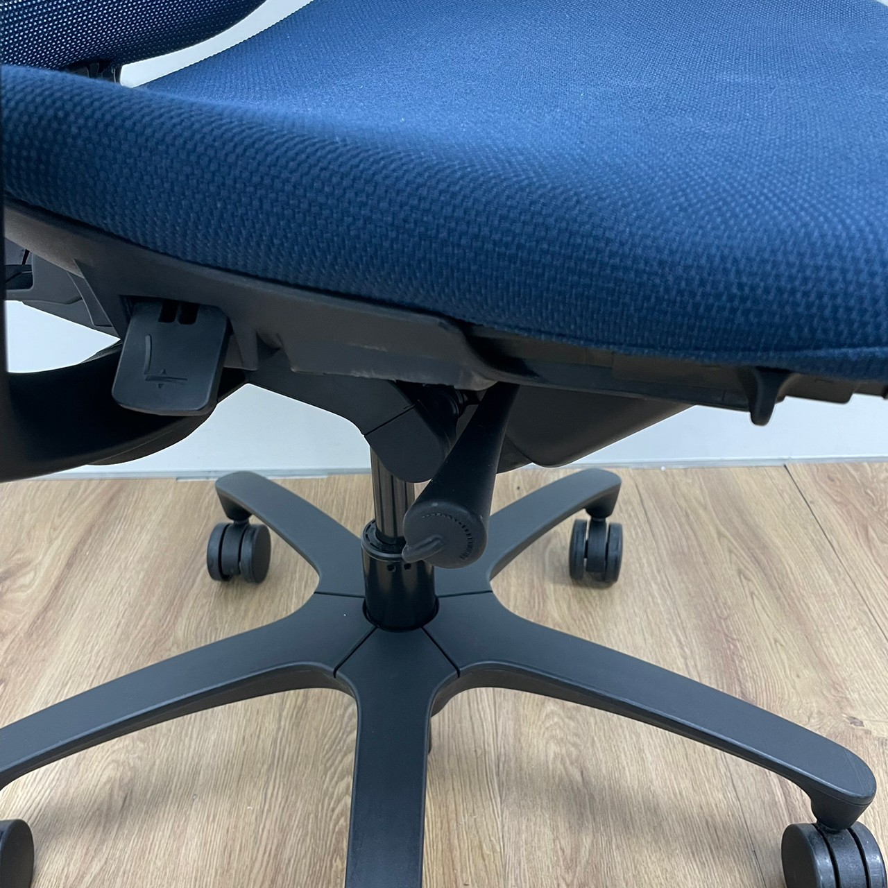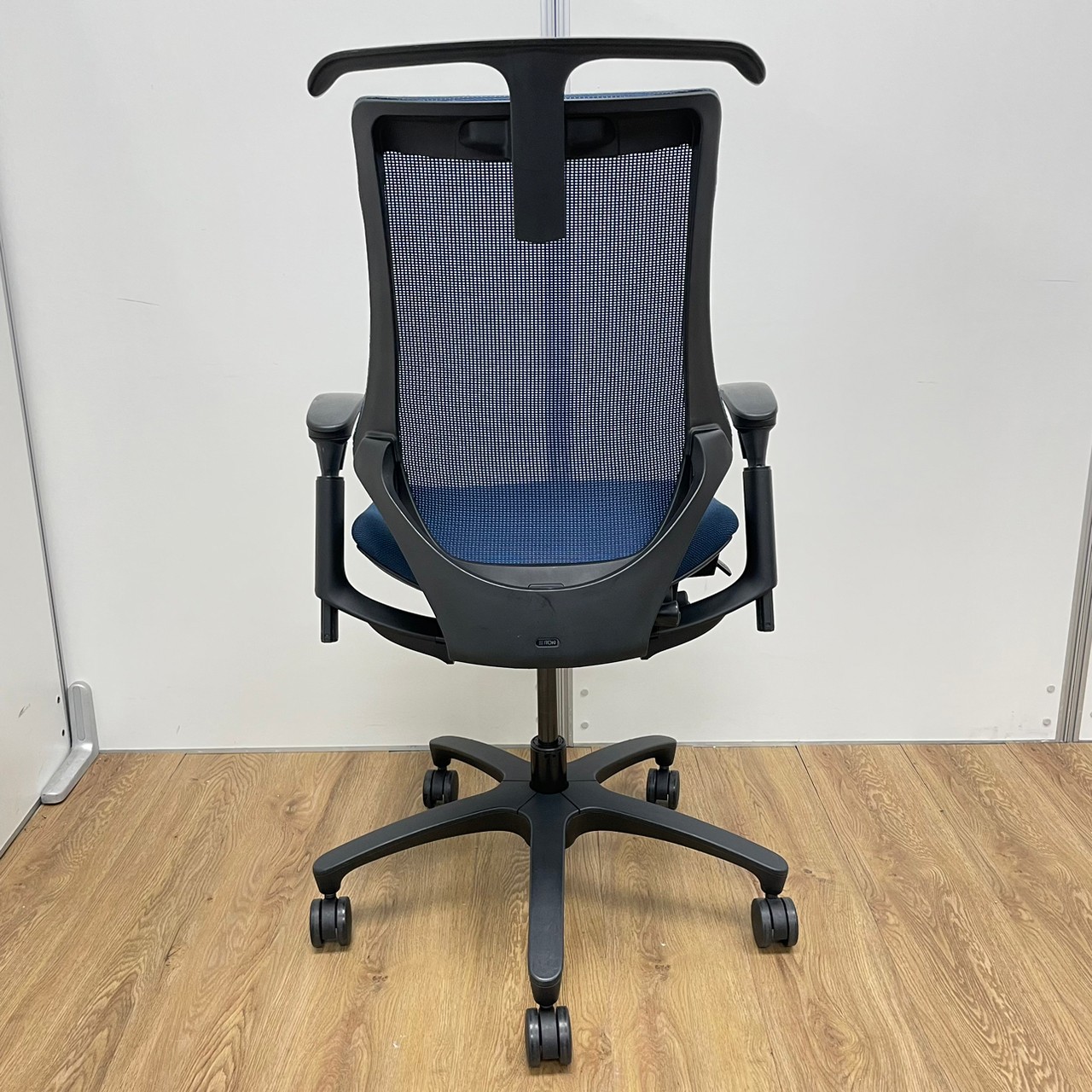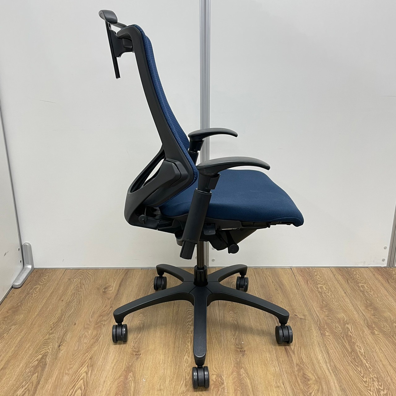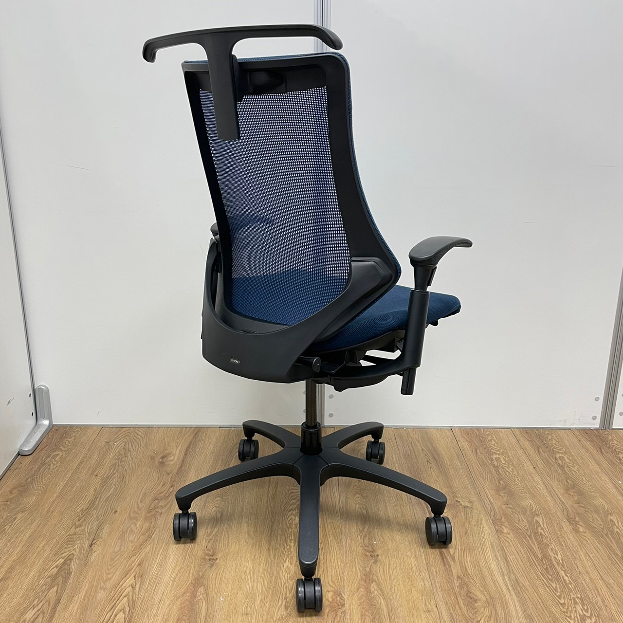 【姿勢の変化にフレキシブルに対応!スタイリッシュで座り心地も抜群な高機能チェア!】■イトーキ(ITOKI)製 エフ(f)チェア 肘付き ハイバック 背面メッシュ ■可動肘 ■ネイビーブルー ×ブラックシェル