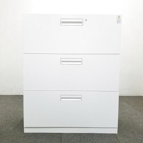 【2020年製】【収納力抜群の3段ラテラル書庫!A4書類が大量に収納可能!】■コクヨ(KOKUYO)製 エディア(EDIA)シリーズ 3段ラテラル ローキャビネット H1130㎜ ■天板・ベース付き ■ホワイト ■シリンダー錠【2511】弊社使用欄【A01044970】