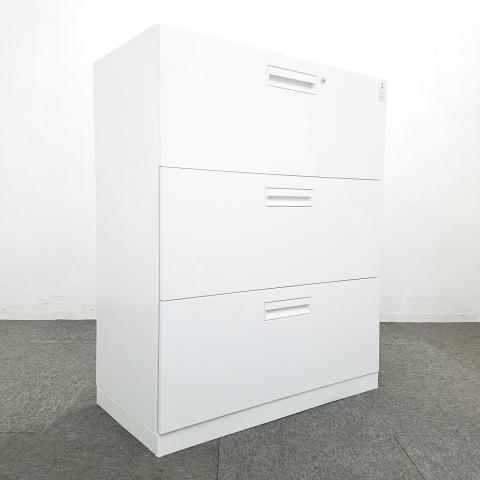 【4台入荷】【収納力抜群の3段ラテラル書庫!A4書類が大量に収納可能!】■コクヨ(KOKUYO)製 エディア(EDIA)シリーズ 3段ラテラル ローキャビネット ■天板/ベース付き ■ホワイト ■シリンダー錠