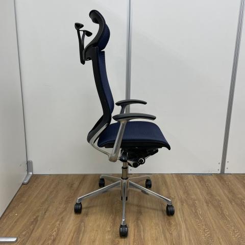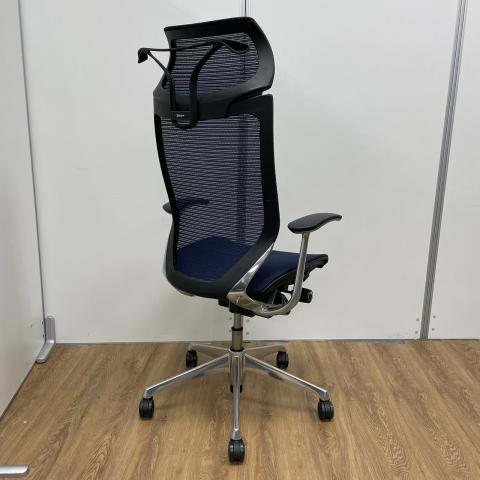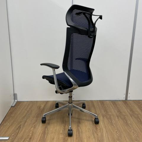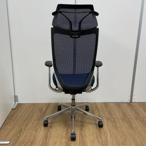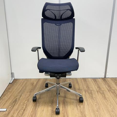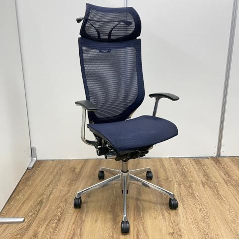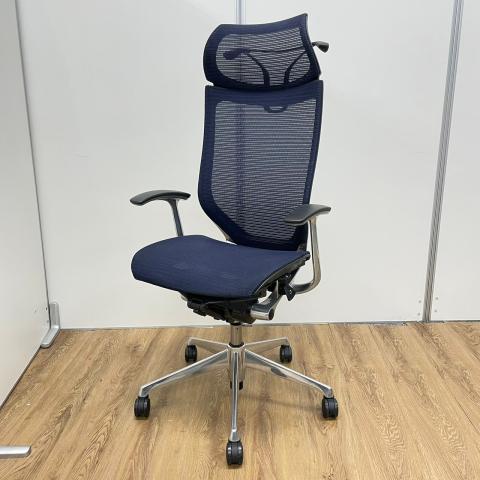 【現品限り】オカムラ製 バロンシリーズ ダークブルー ヘッドレス付 肘付きハイバックチェア!!※現物画像※- 京都東寺店