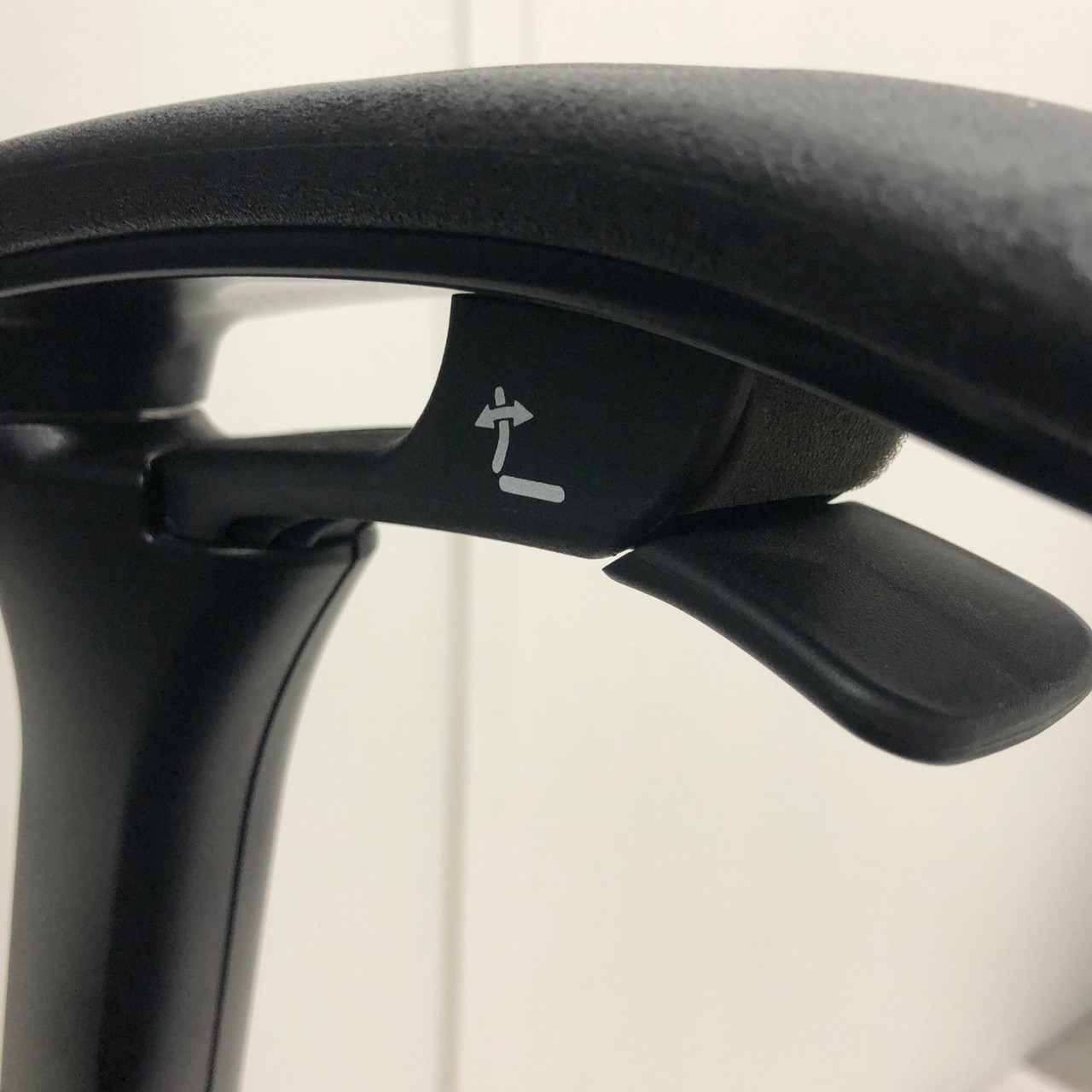肘の先端にレバーがあり、そこでリクライニング、高さを調整することができる。