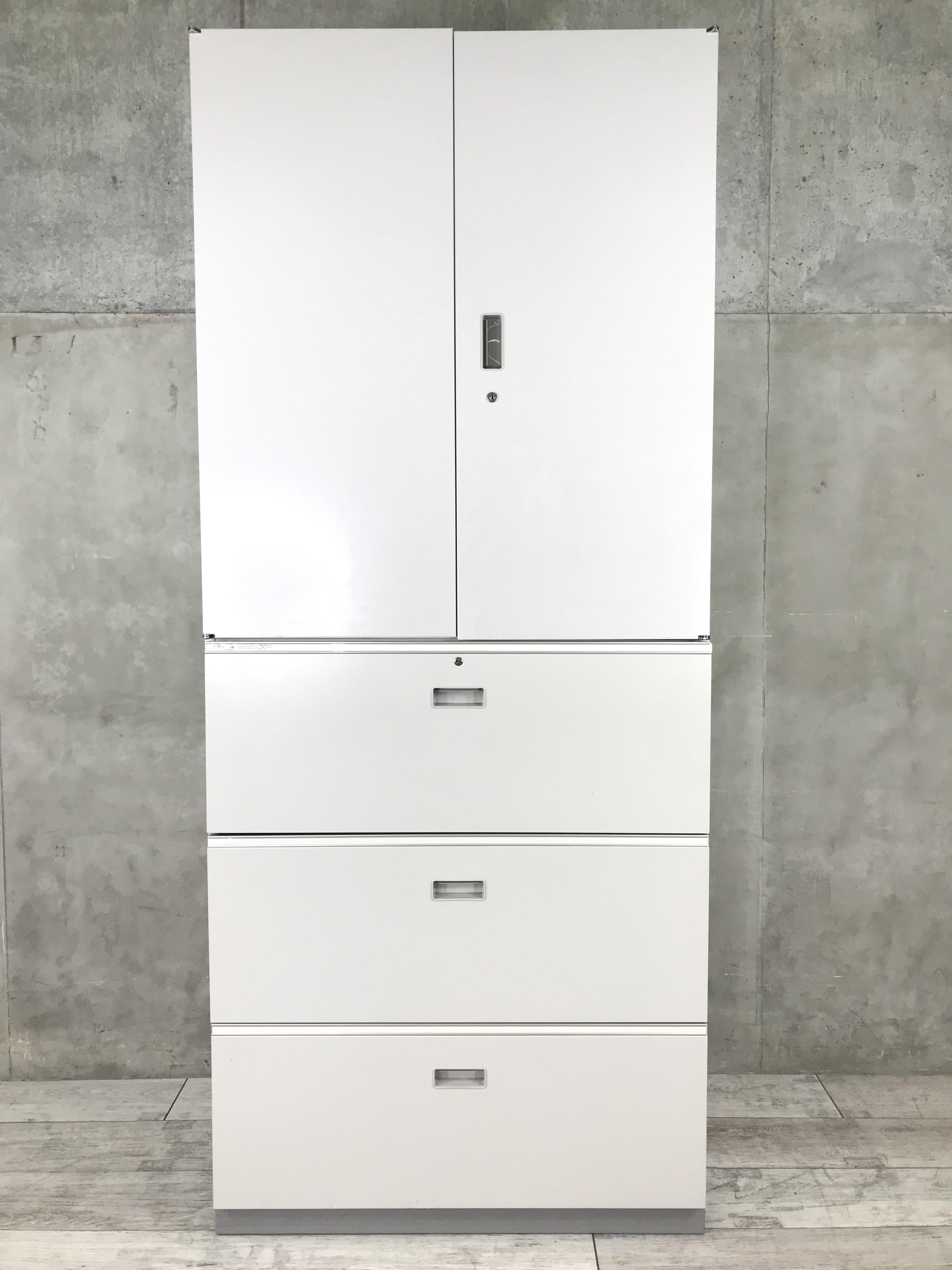 【倉庫在庫品】【これ1台で書類整理の問題が解決!上下で6段分の大容量収納!】■イトーキ (ITOKI)製 シンライン ハイキャビネット 両開き+3段ラテラル 書庫セット ■グレー ■シリンダー錠