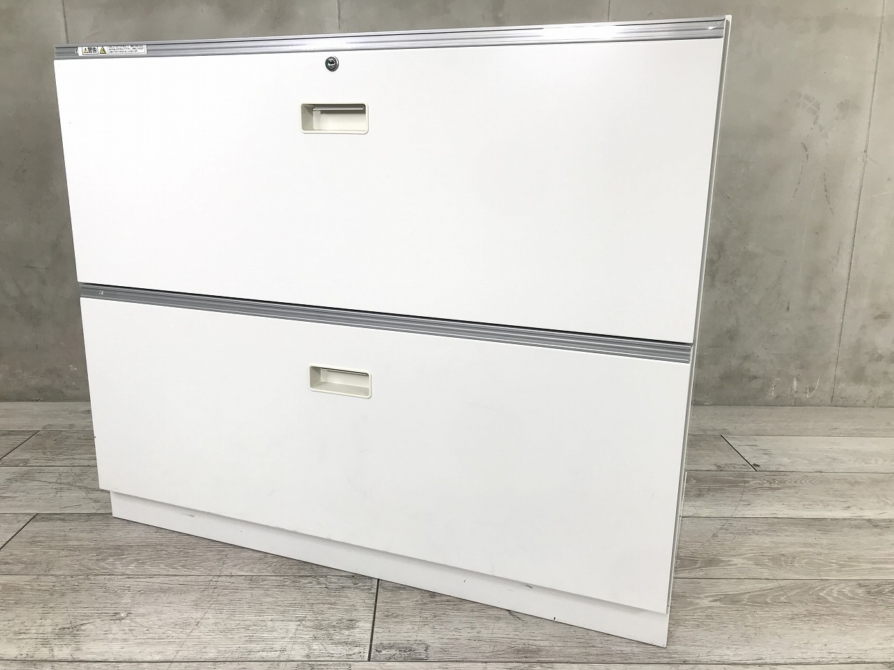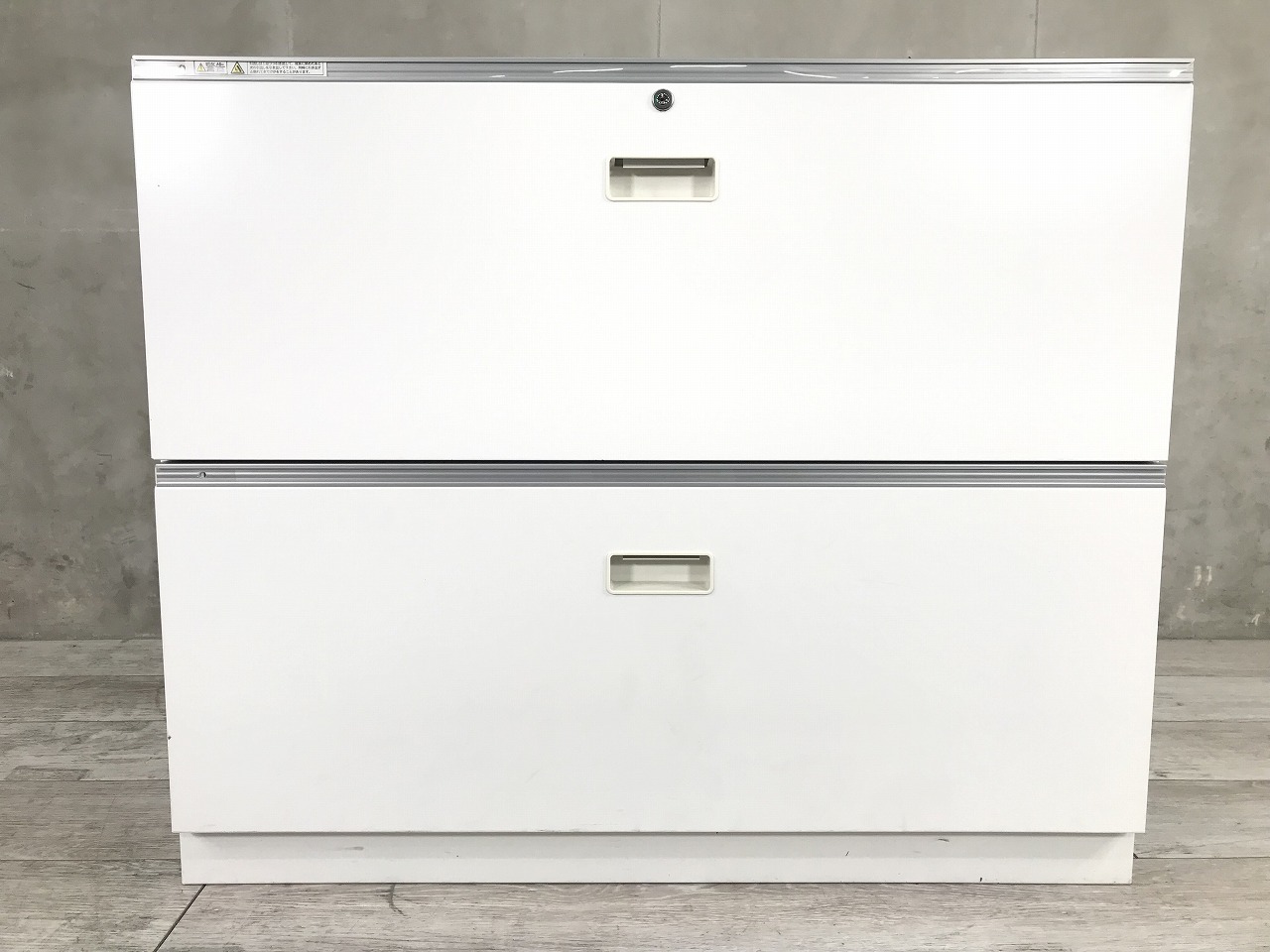 【窓下スペースを有効活用!】■イトーキ製 2段ラテラル書庫 ホワイト ■使い勝手の良い引出し型キャビネット!- 品川・三田店