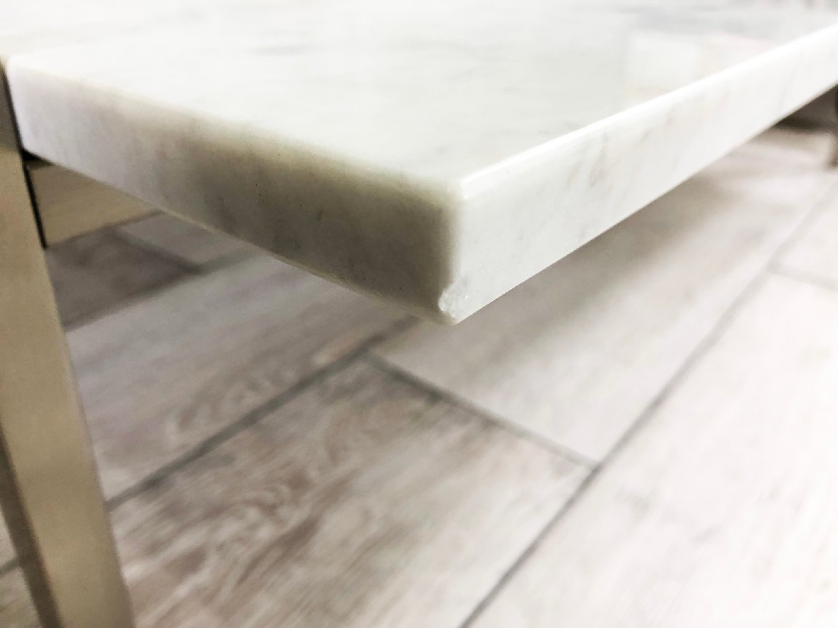 まるで大理石天板が浮いているかのように見え高級家具でありながら緊張感を感じさせずシンプルの中にもイタリアデザインならではの拘りが感じられます。