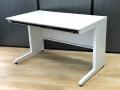 横幅1200mmの平机は、足元も広く机上にパソコンや書類を置いても