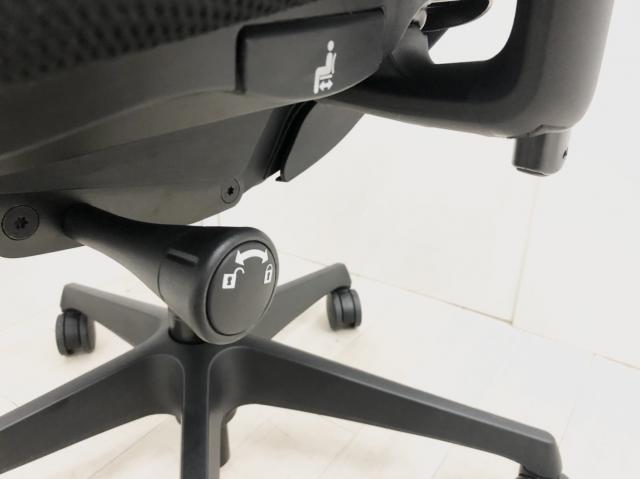 - 座面右下のダイヤル操作で、リクライニングの強弱調整が行えます。これまでのダイヤル式よりも、少ない回転数で、最弱?最強の調整が可能です。
