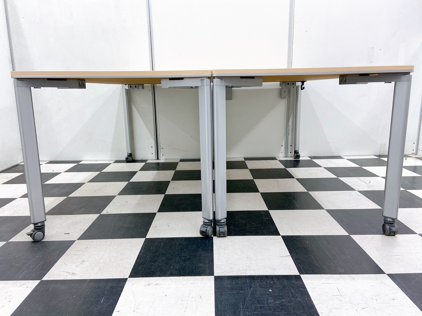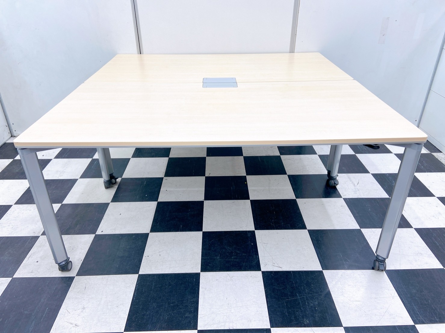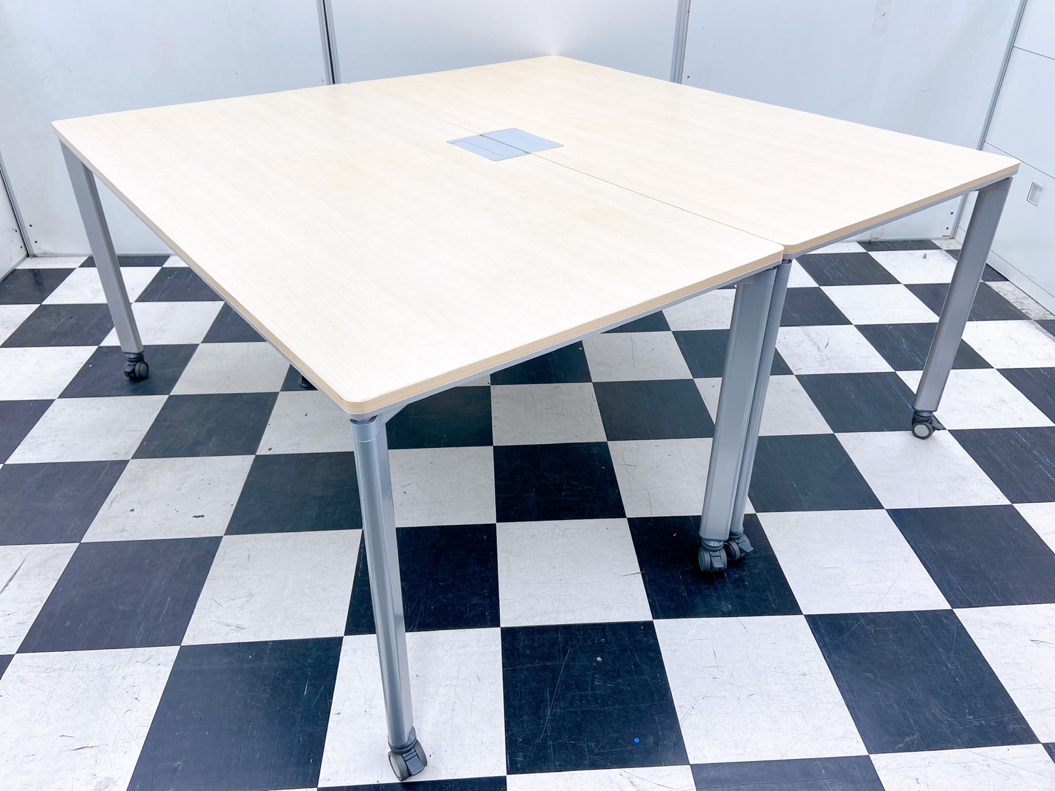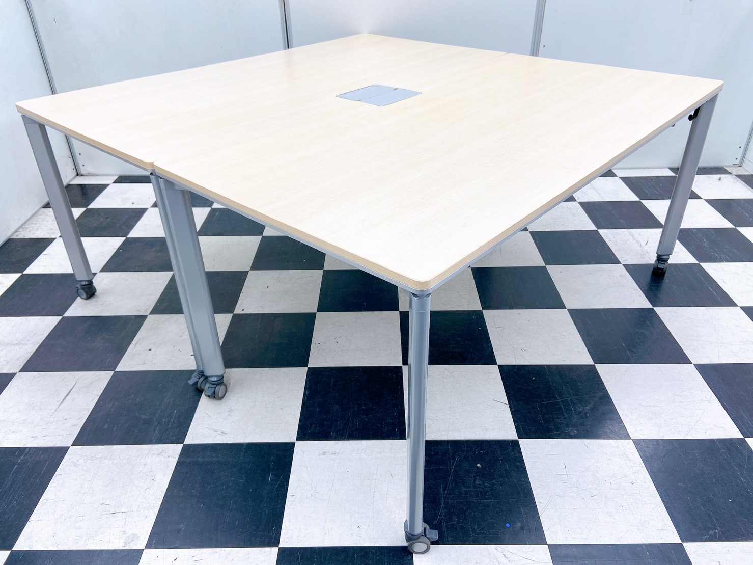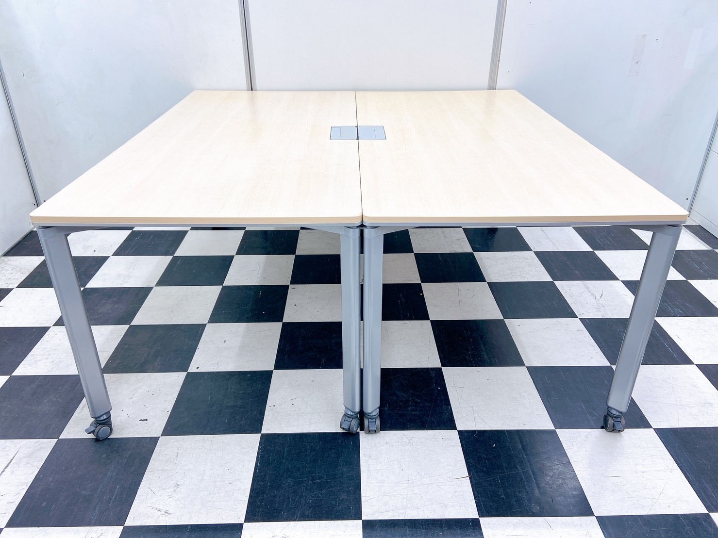 【お得な2台セット!さらに部材欠けがある為、お安くご提案!】【1600㎜×1600mmサイズ!配線付き4人での作業にピッタリ!!】コクヨ(KOKUYO) ミーティングテーブル ■色:ナチュラル キャスター付- 埼玉本店