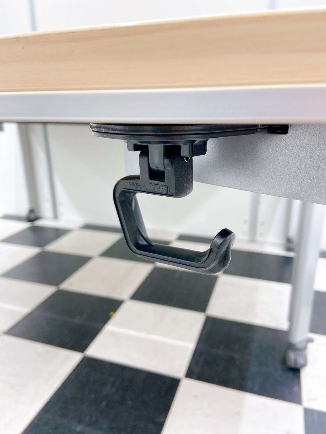 さらに天板下には荷物掛けのフックもある為、天板の上に荷物を置かずに作業できます!