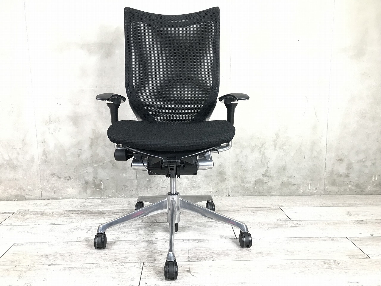 【座面メッシュ】スタンダードメッシュ ブラックフレーム アームレスト付き ヘッド付きオススメ(おすすめ) 大人気 ・Okamura/オカムラ ・Baron/バロン ※横浜本店撮影画像※