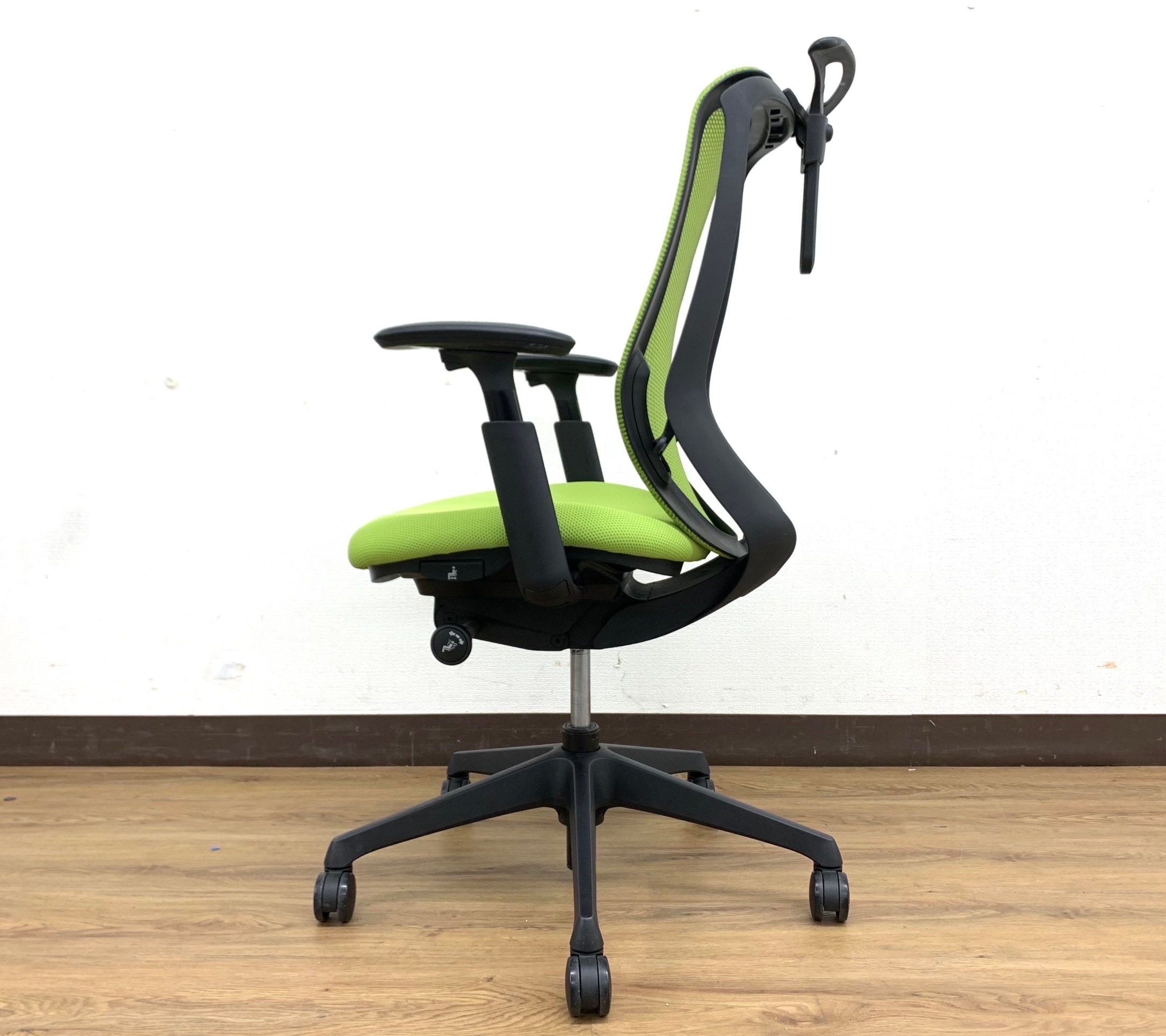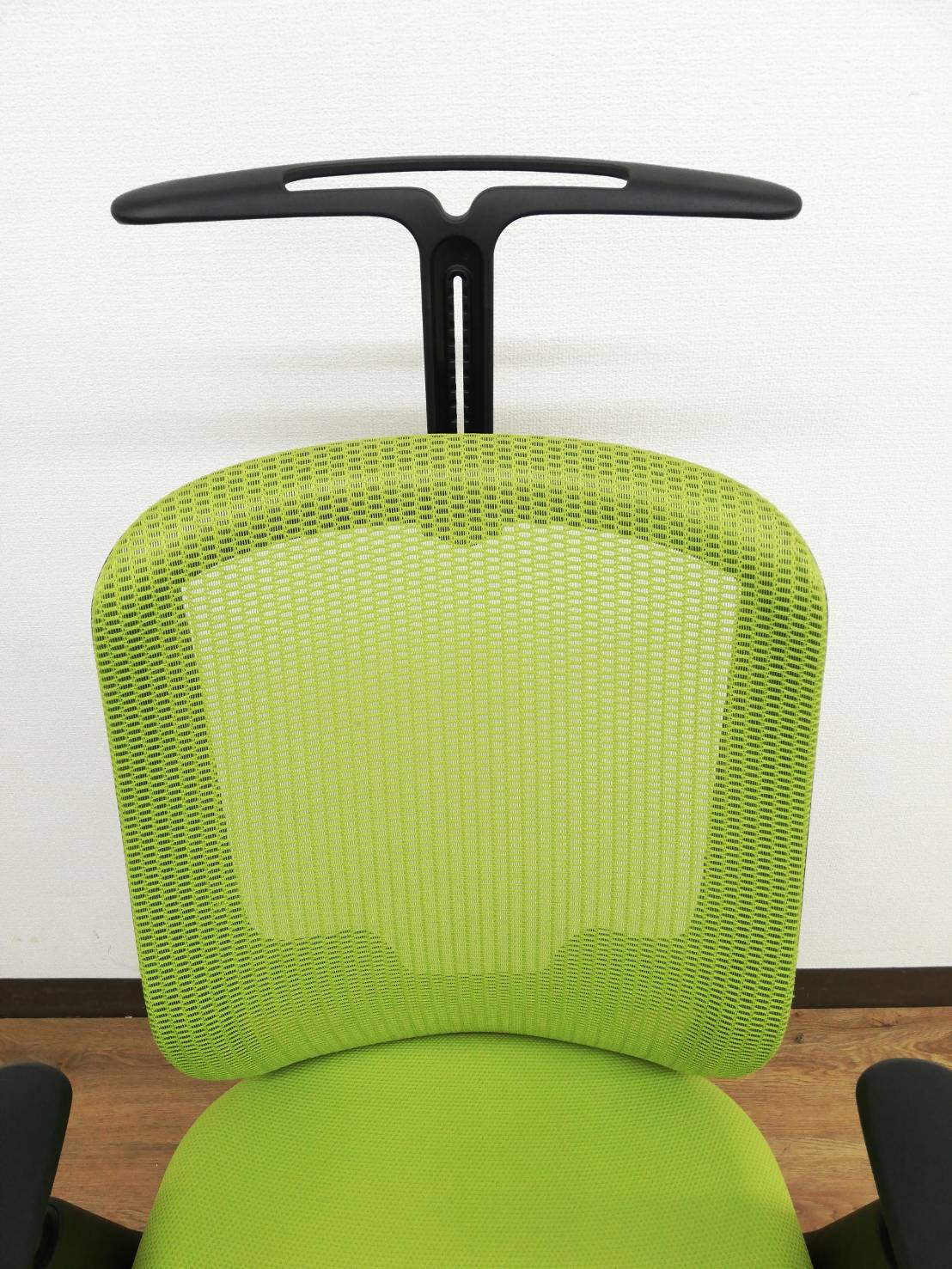 明るいグリーン オカムラ製 シルフィー Sylphy 可動肘掛け ハンガー付 ブラック- 新大阪店