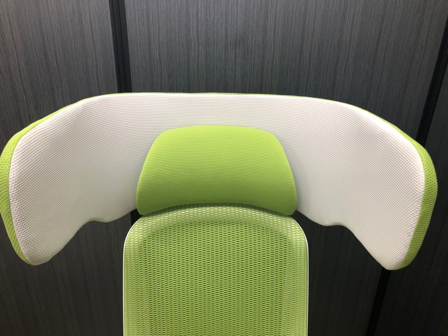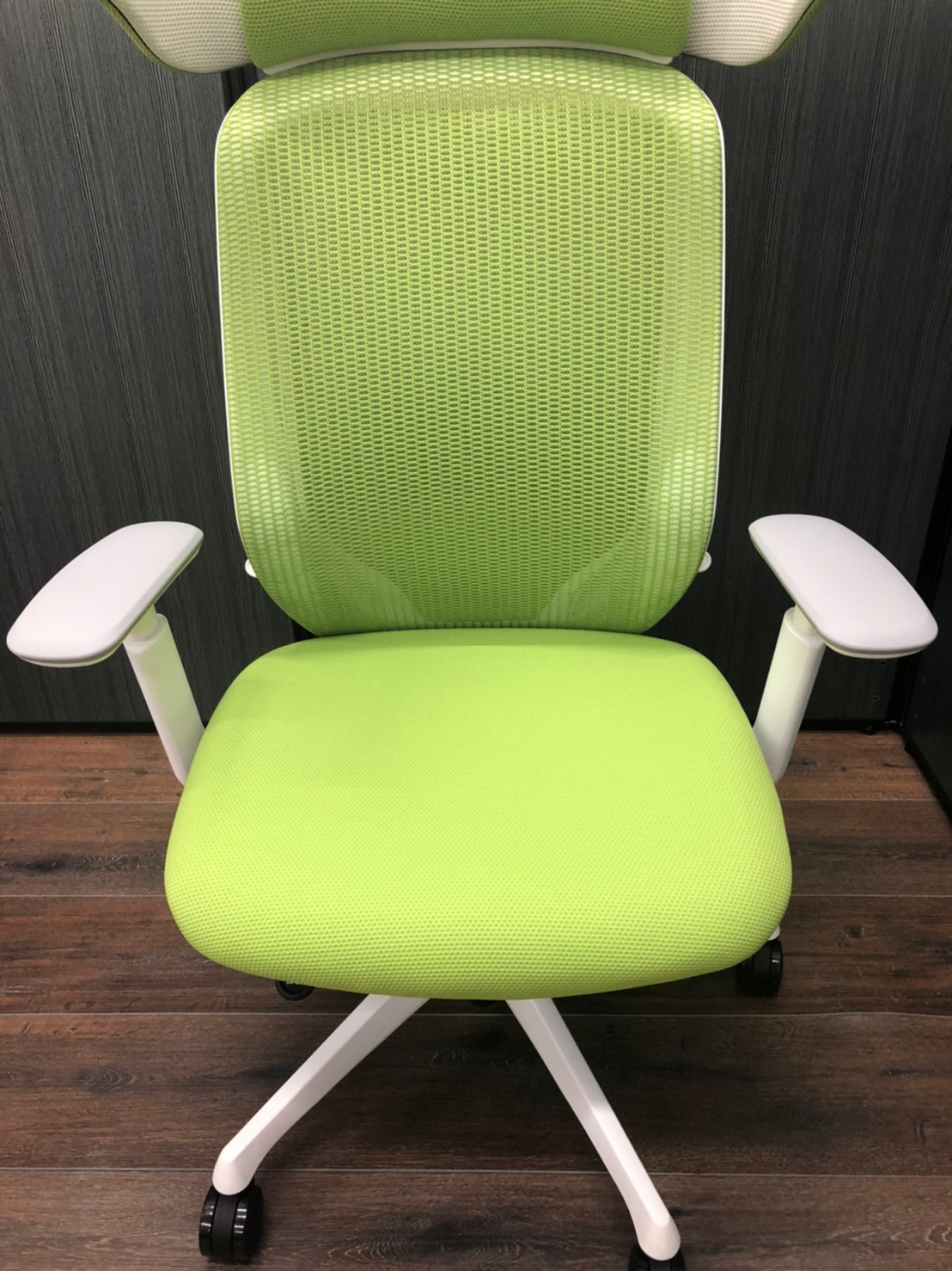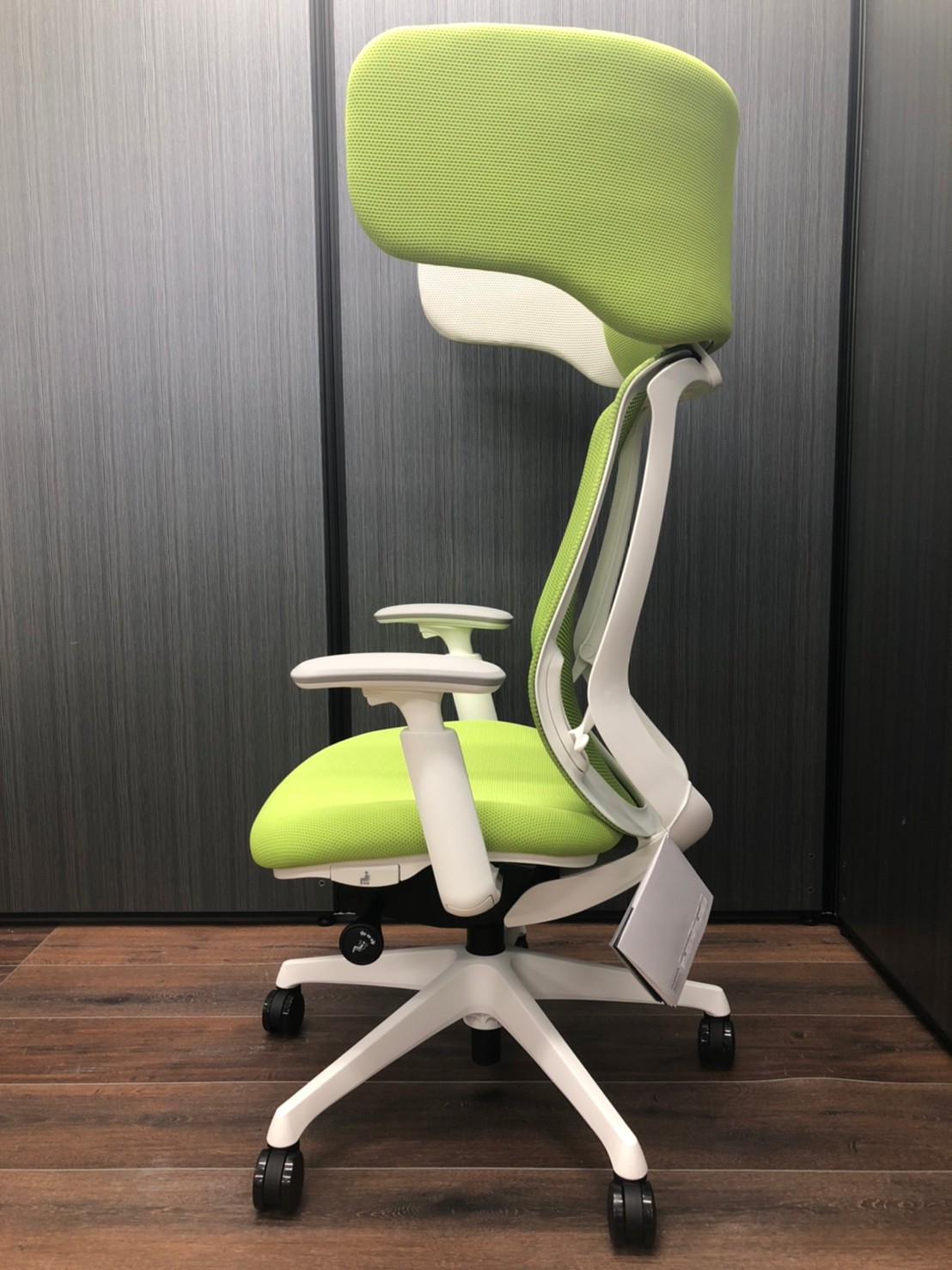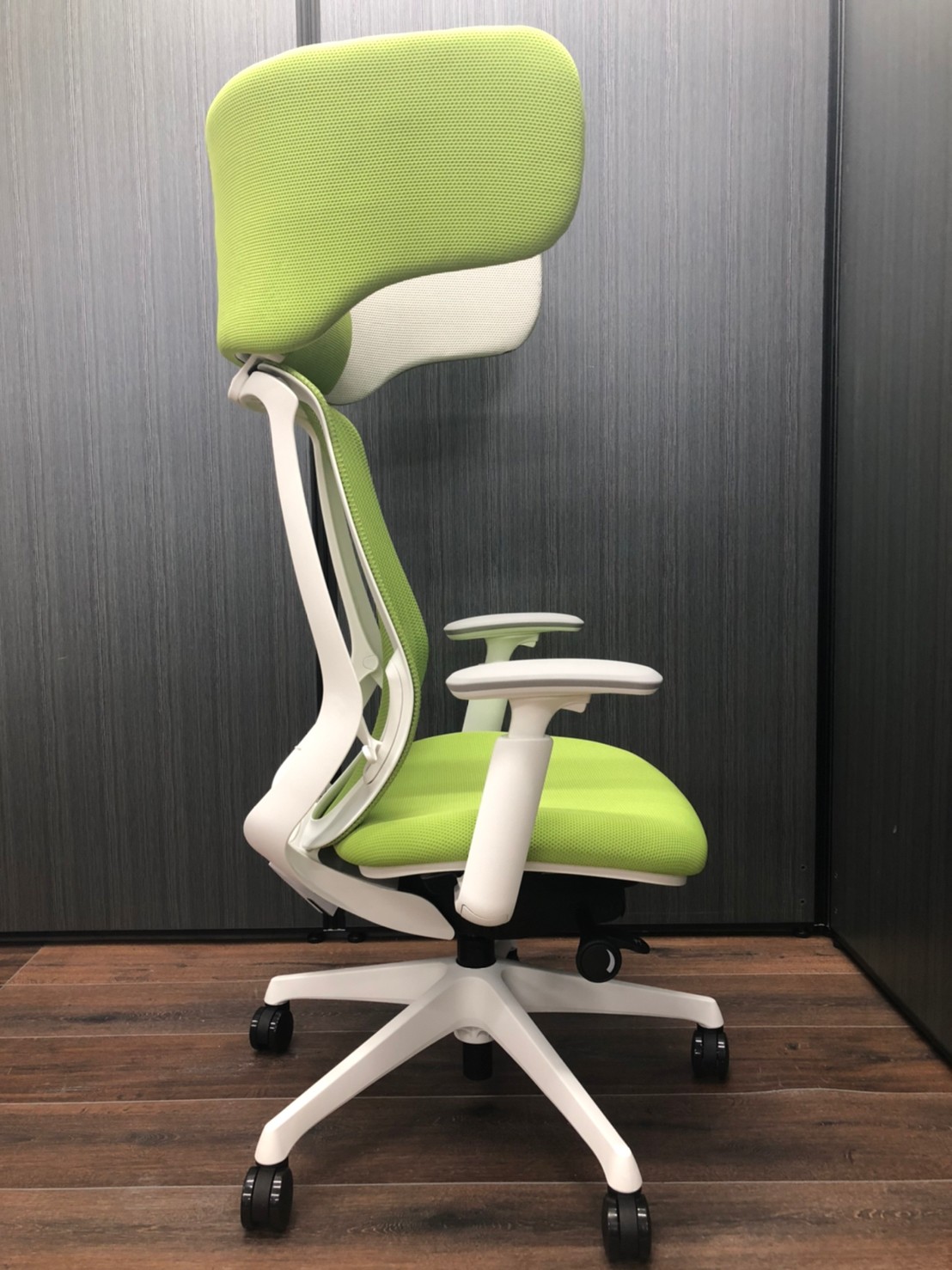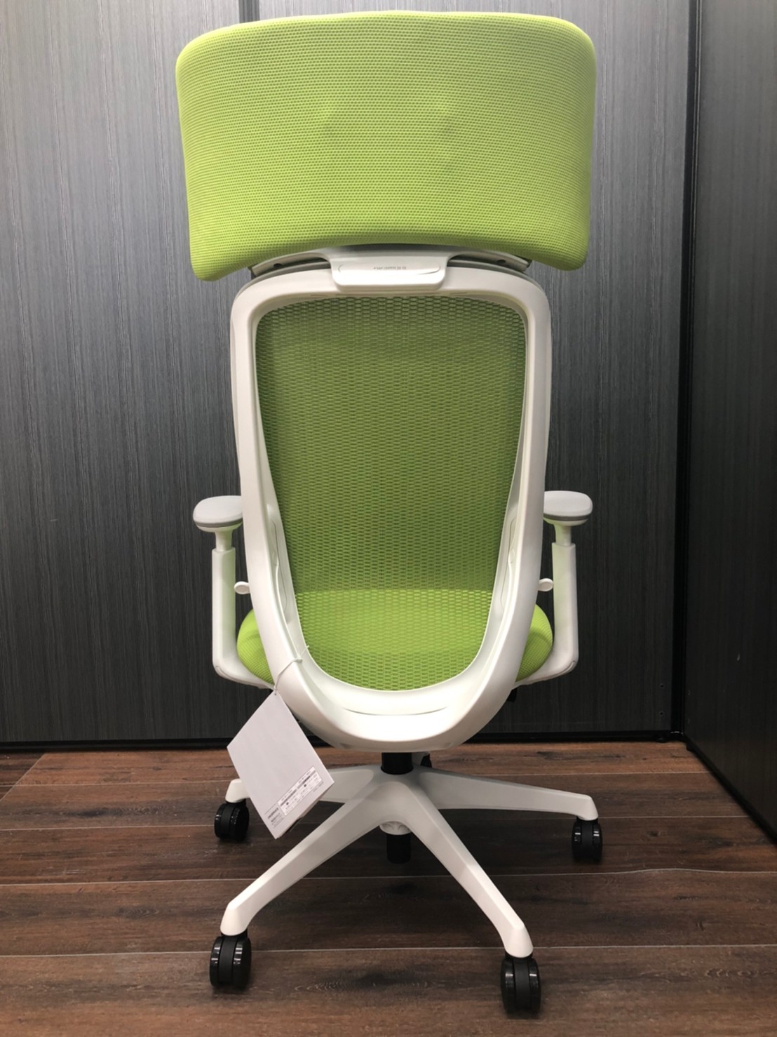 【在庫入替セール品】【人気のシルフィチェアヘッドレスト付きが1脚限定入荷!】オカムラ シルフィ ライムグリーン エクストラハイバック ホワイトフレーム デザインアーム(固定肘) 前傾チルト機能付き