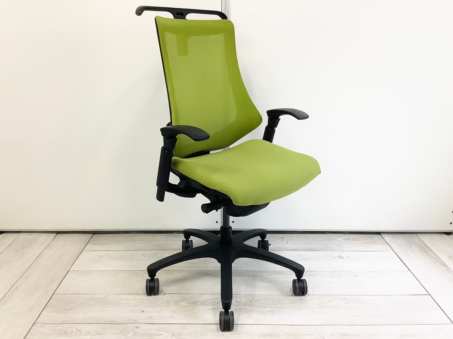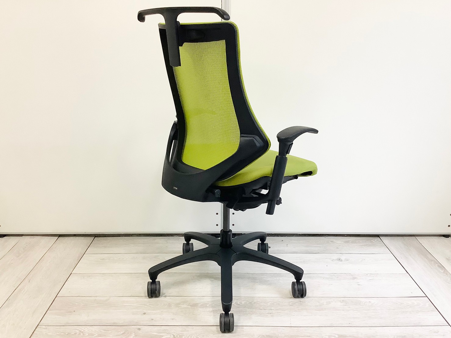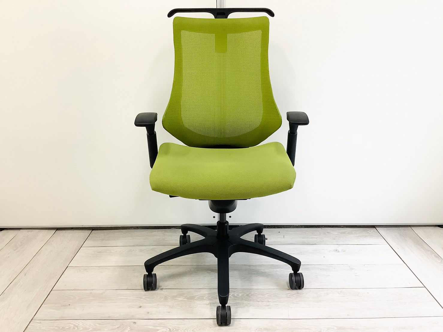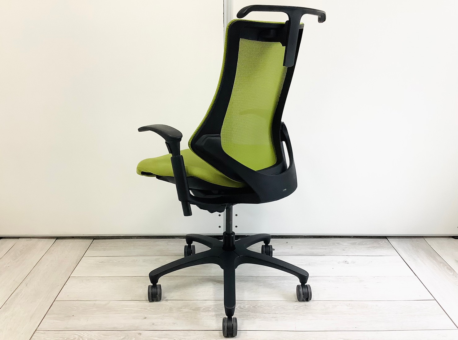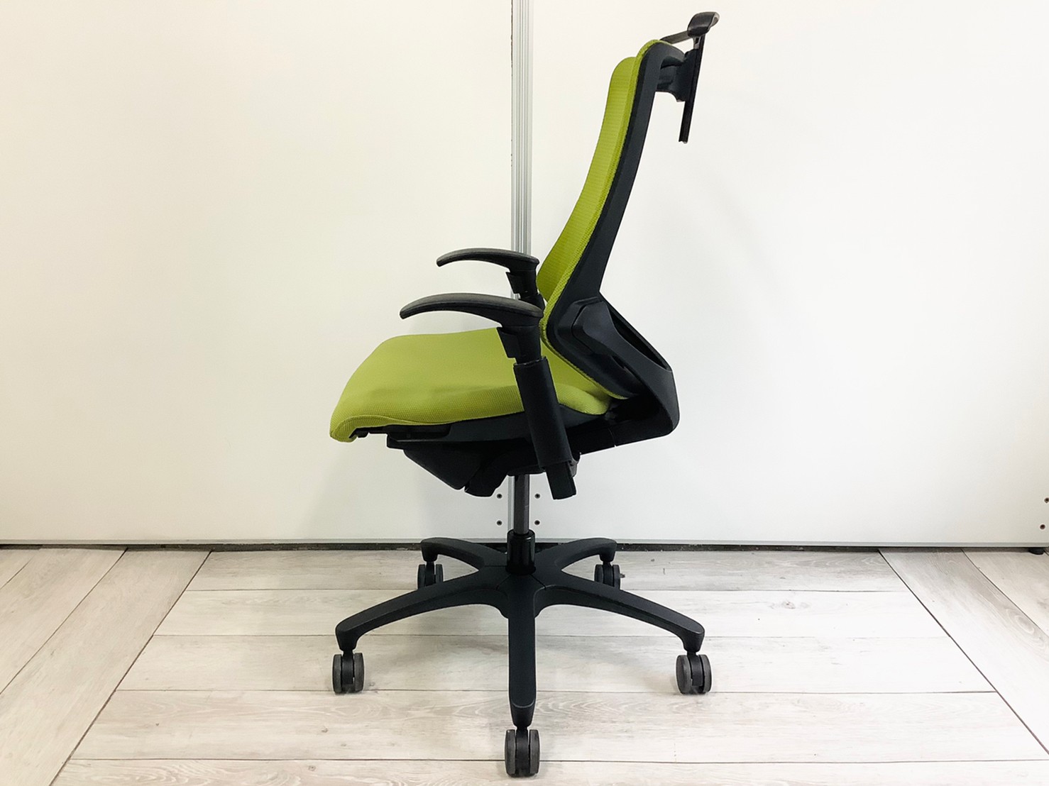 【メッシュ背面の快適OAチェアが入荷です! 背もたれの大きなハイバックタイプ! 姿勢の変化にフレキシブルに対応!】■イトーキ(ITOKI) ■エフ(f)チェア ■ハイバック ■メッシュ背面 ■可動肘付き ■グリーン【状態良好品!】