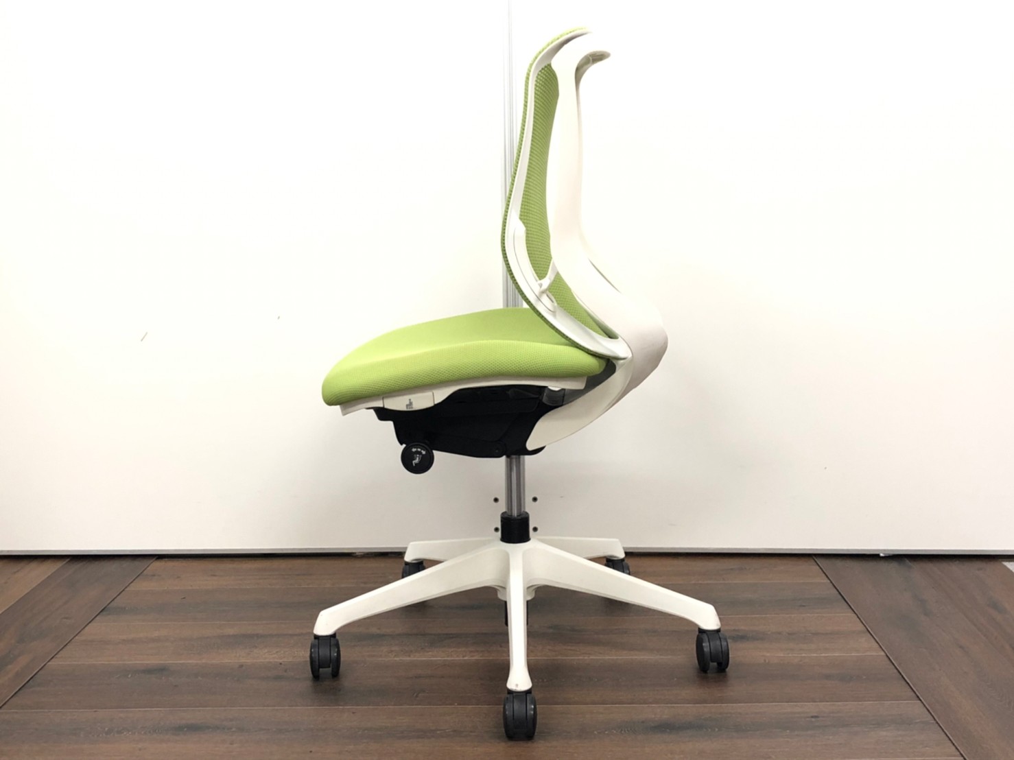 【¥24,700⇒¥19,800 商品入替20%OFF】【大量10脚以上入荷!肘無しでコンパクトサイズ!!】オカムラ(okamura)シルフィ(Sylphy)/ライムグリーン/ホワイトボディ 【β2309】- 埼玉本店