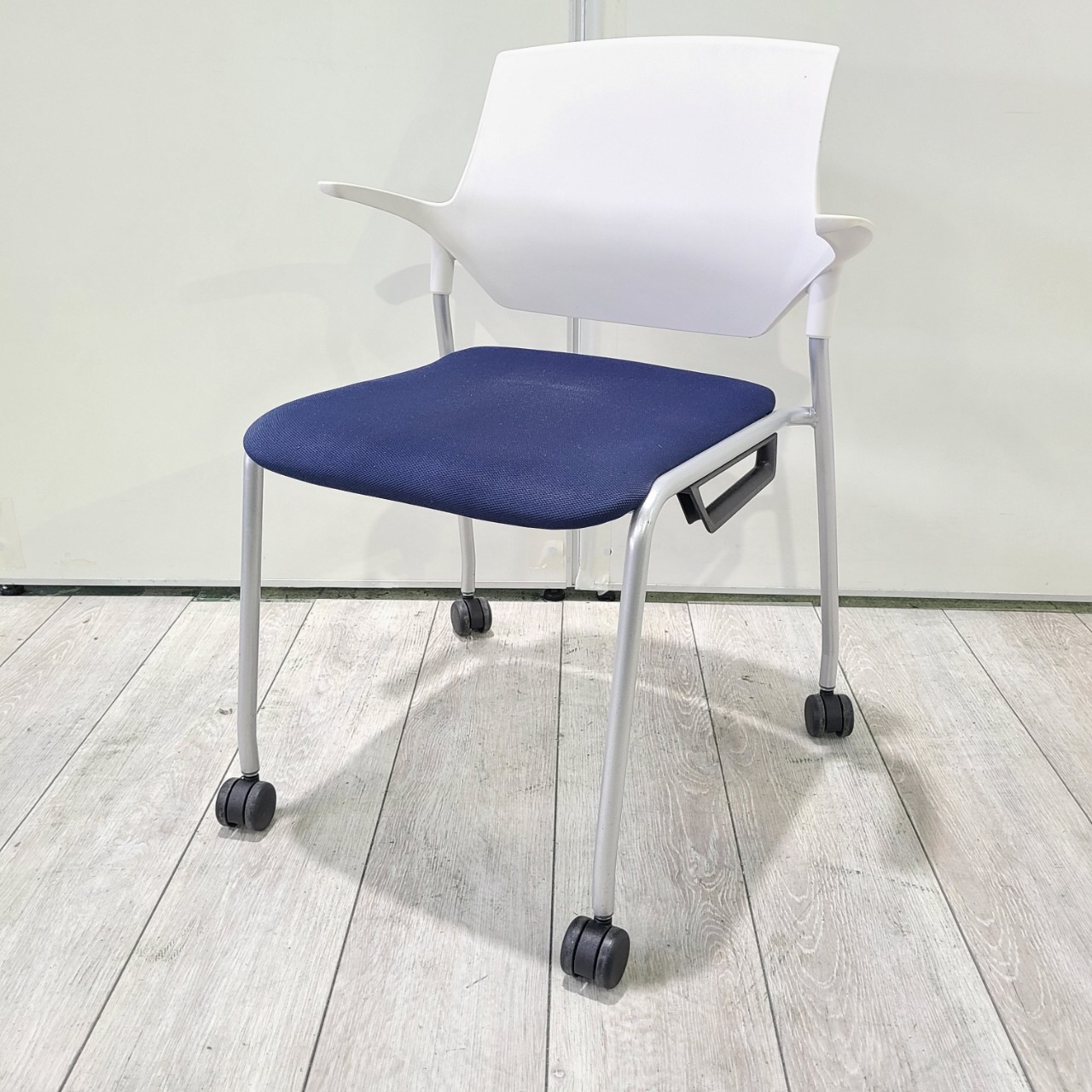 【T11】【商品入替のため、在庫限り】イトーキ製 ステンザ インディゴブルーxブラックのツートンカラー キャスター 積重ねタイプ スタッキングチェア!!