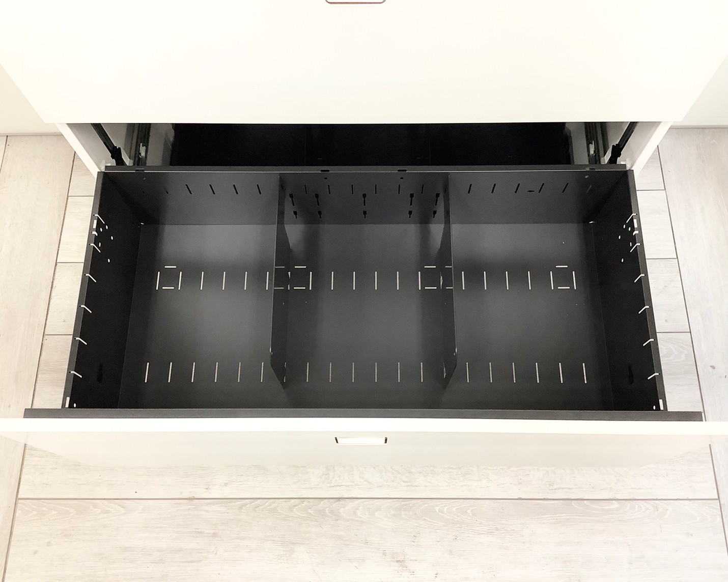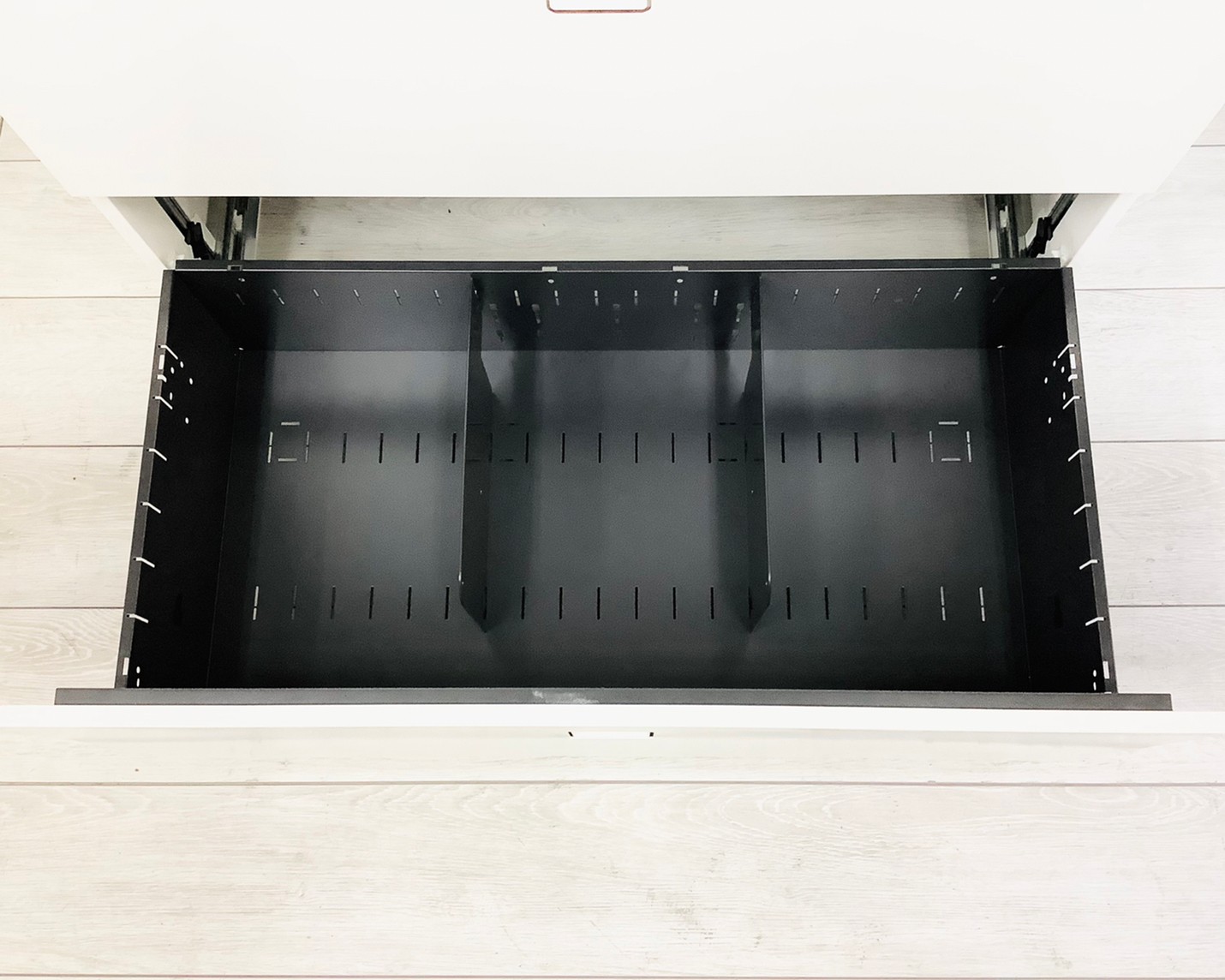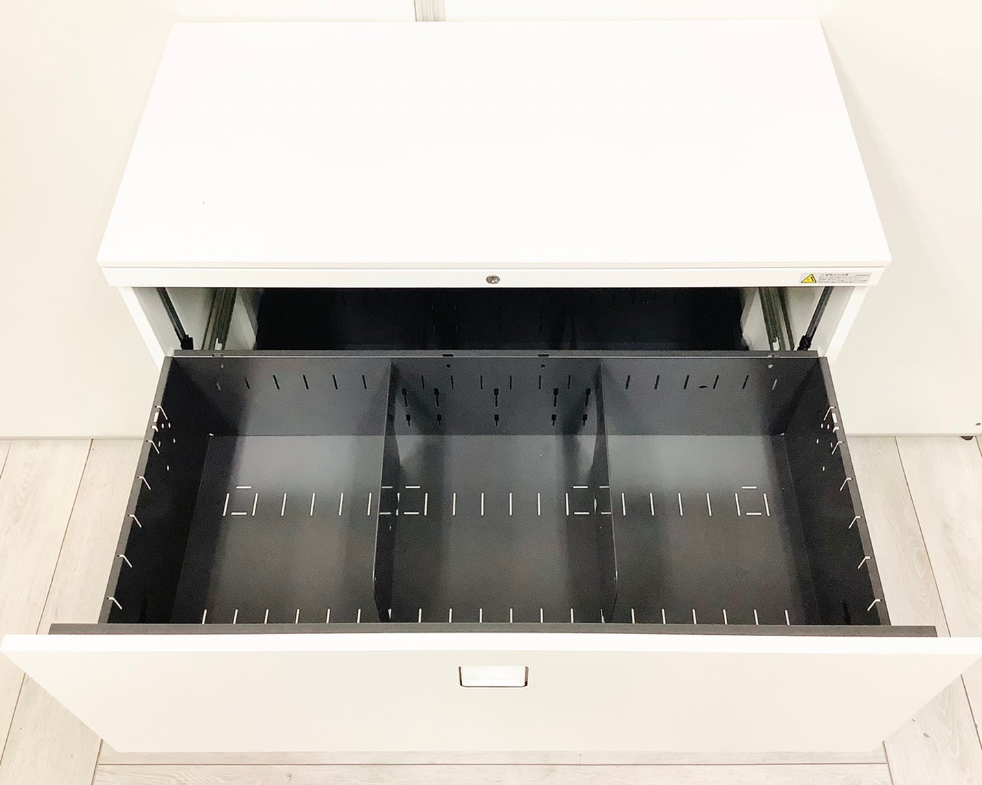 【使いやすさで選ぶならコレ!大容量の三段キャビネット】■オカムラ(Okamura)製 レクトラインシリーズ(Rectline) 3段ラテラル書庫 ローキャビネット ■天板付き ■シリンダー錠 ■ホワイト