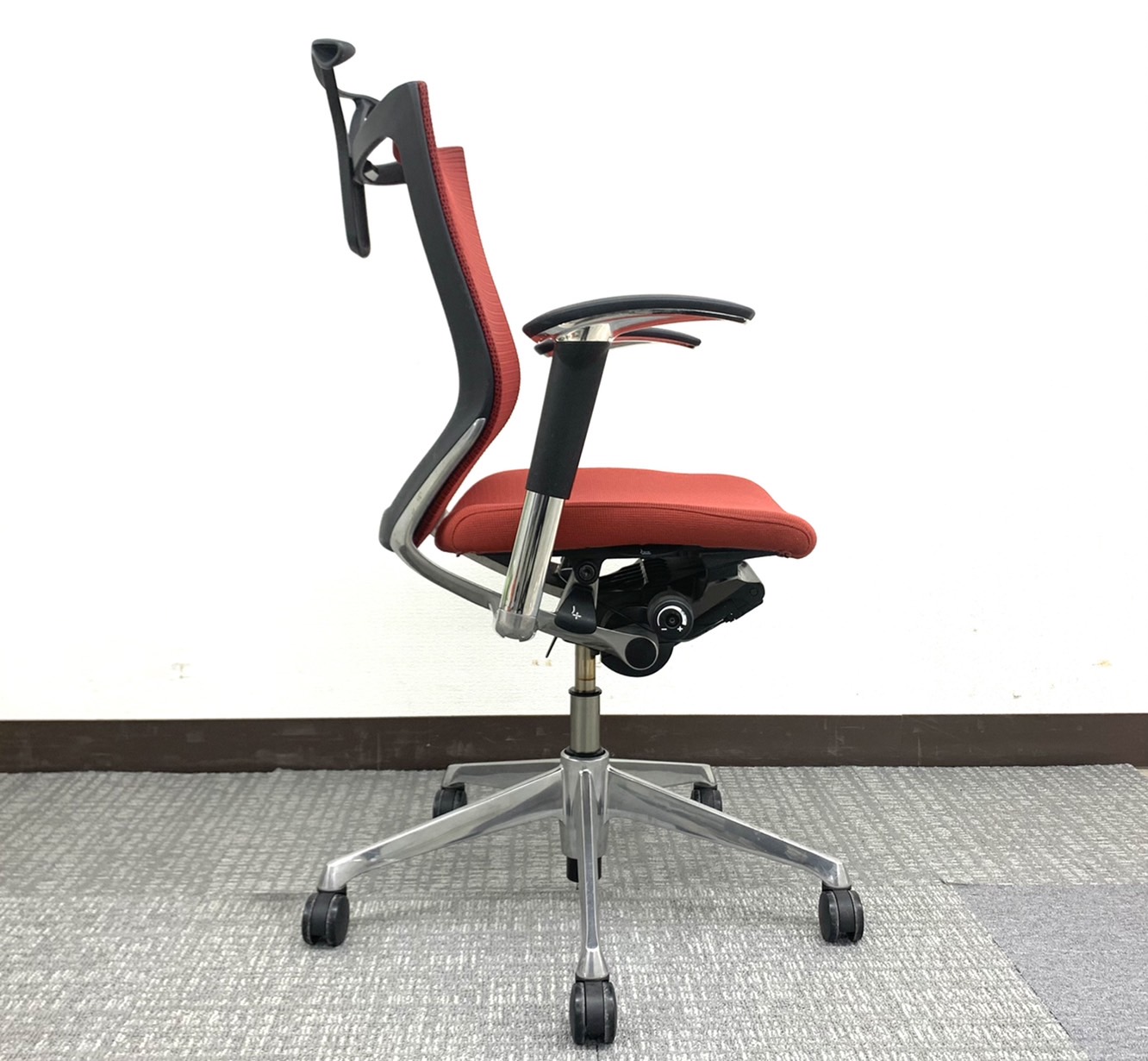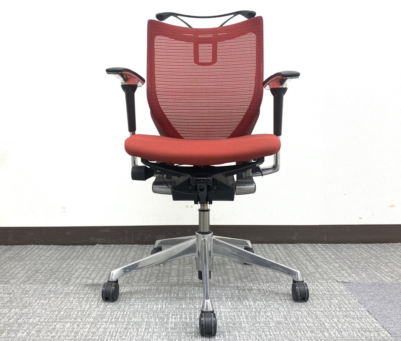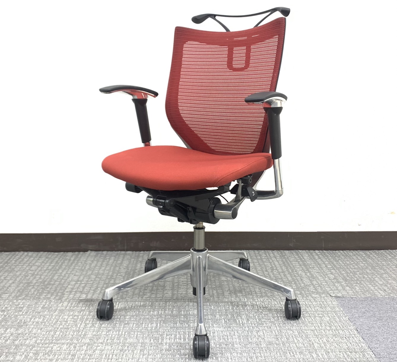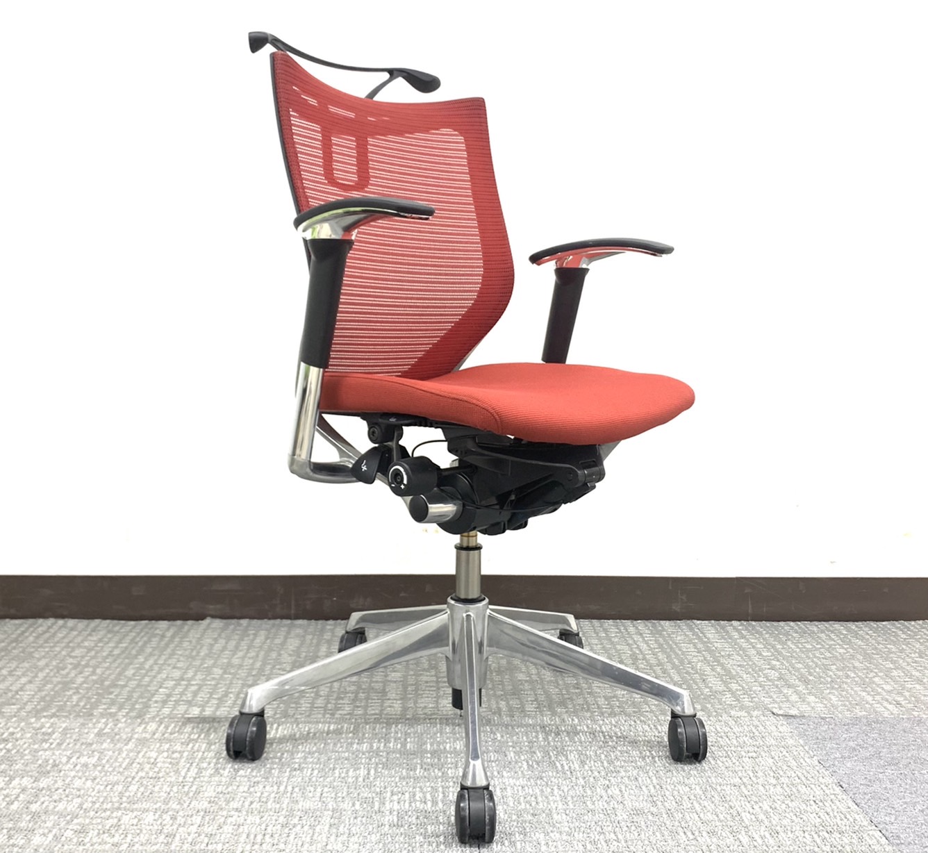 【希少!】レッドバロン(Baron)輝くポリッシュフレーム&ローバック可動肘かけ仕様※ハンガー付◆オカムラ製サーキュラーバリューCO2削減量の算出について