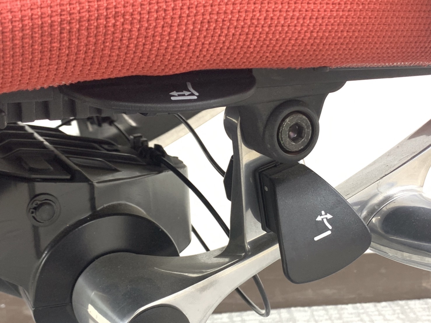 - 座面の右下にあるレバーの操作により座面位置を上下に100mm分調整することが可能です。