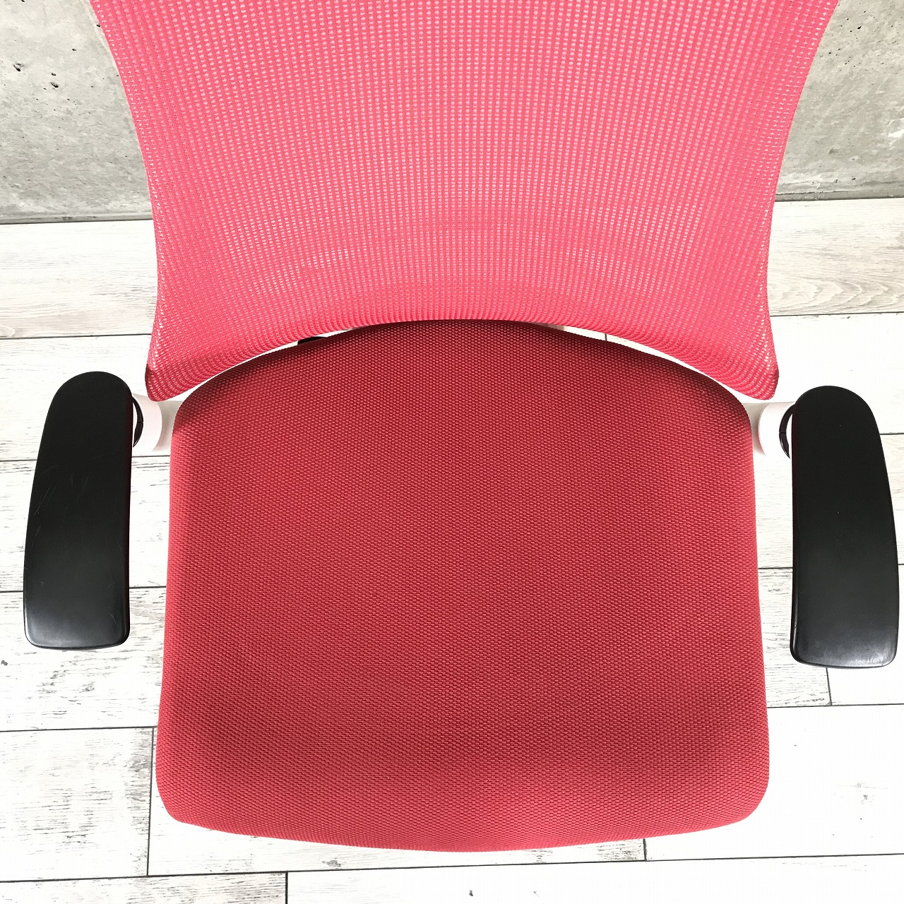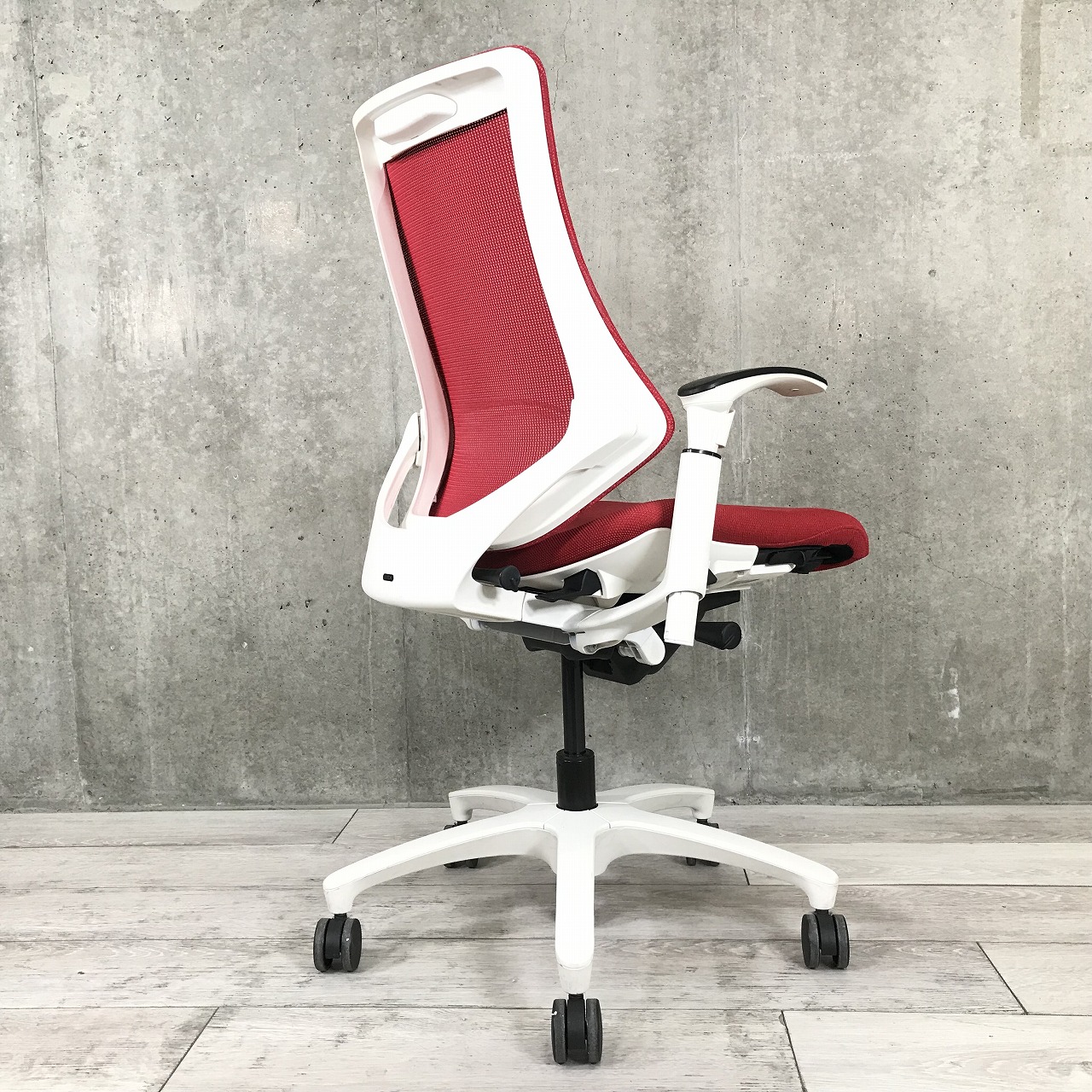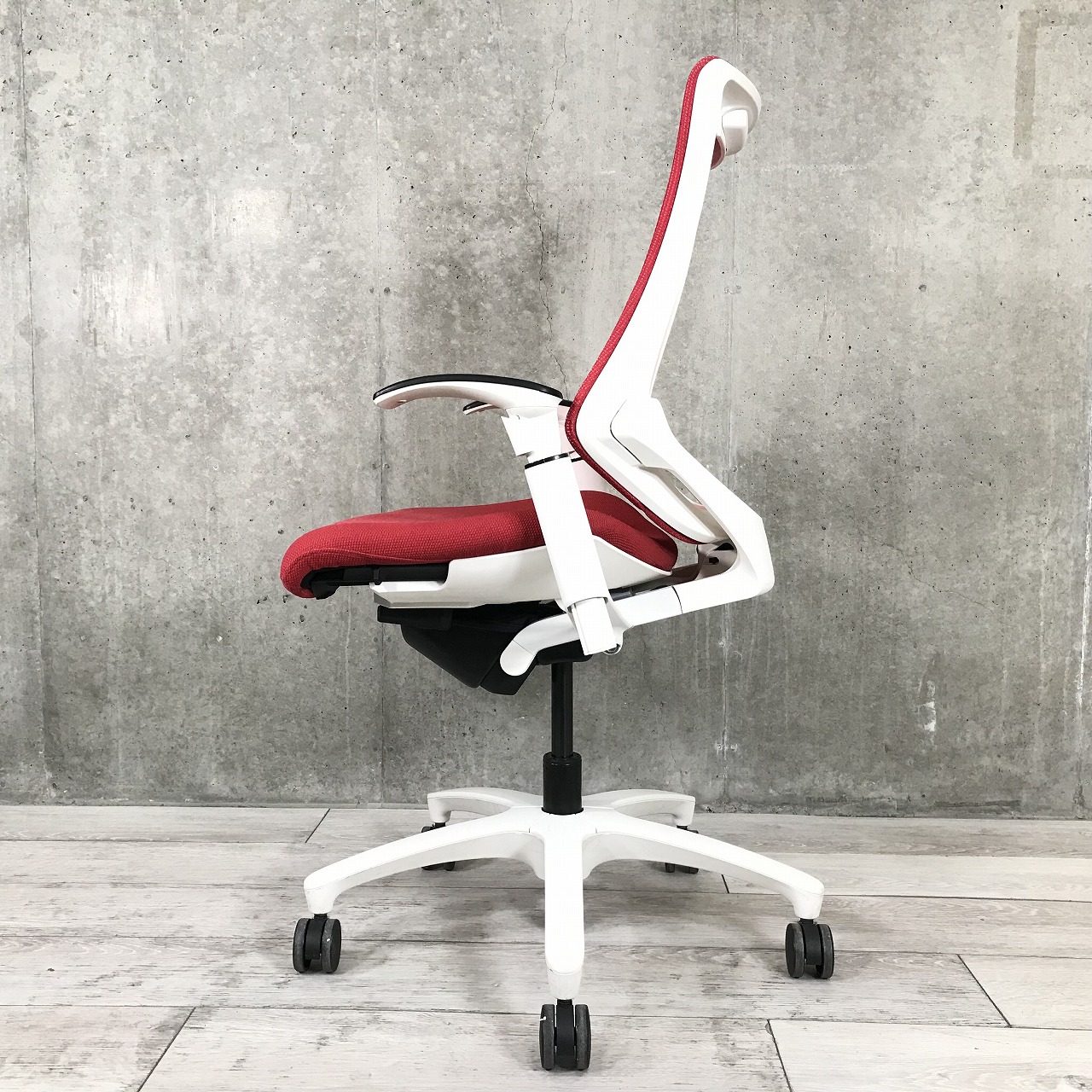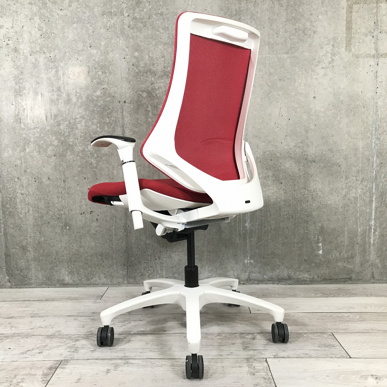 【三次元フォルムが腰にフィット!】■イトーキ製 エフチェア 可動肘付 ラズベリーレッド ■長時間のパソコン作業にもオススメ!- 千葉店