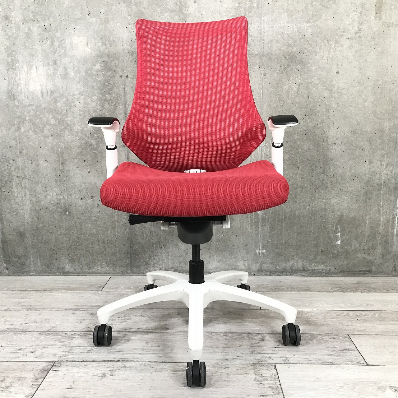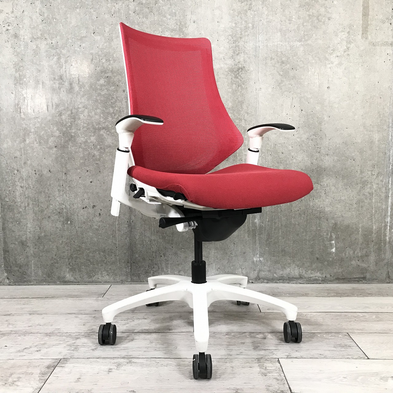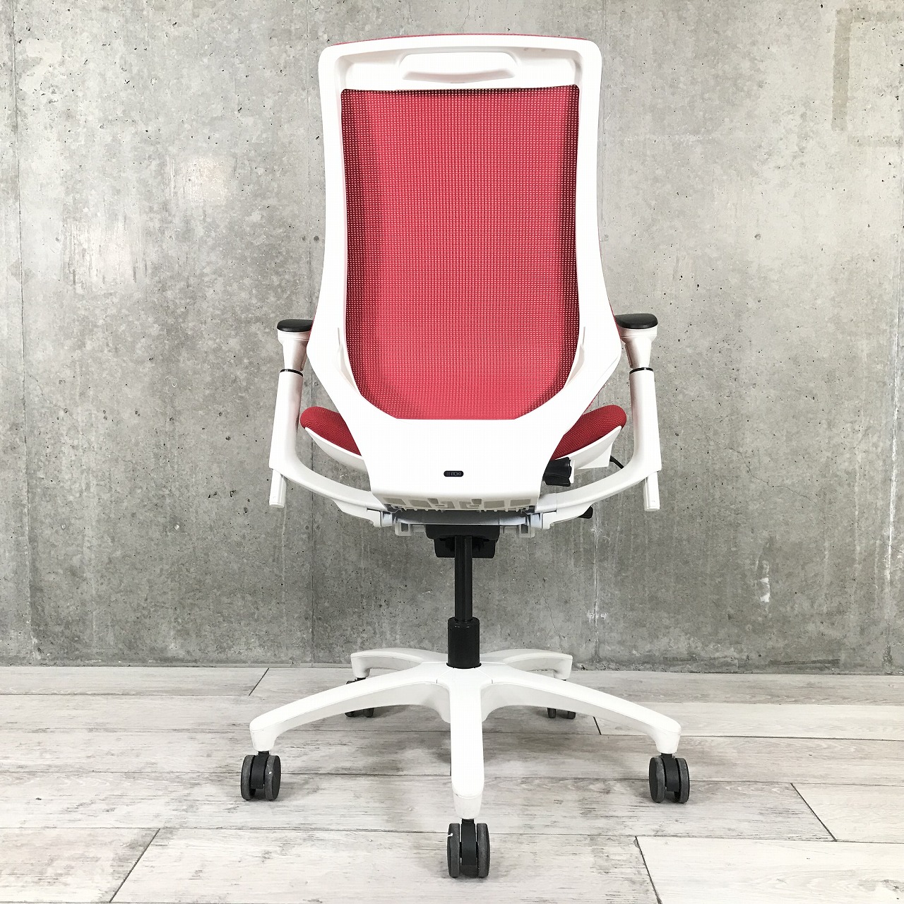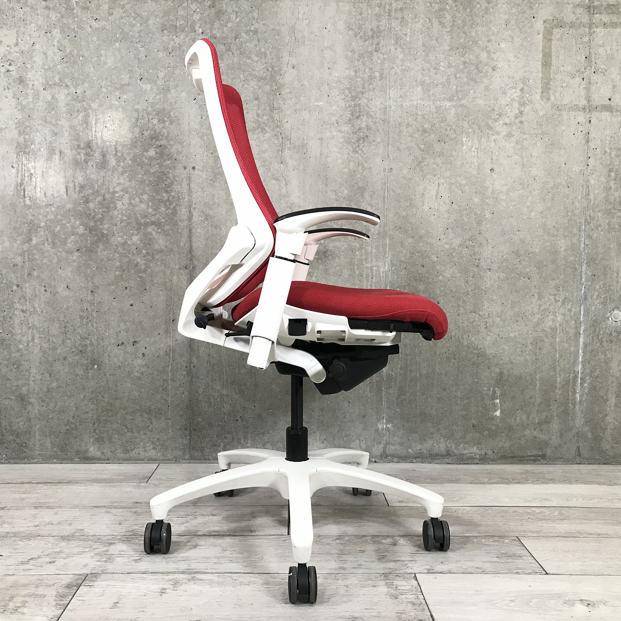 【三次元フォルムが腰にフィット!】■イトーキ製 エフチェア 可動肘付 ラズベリーレッド ■長時間のパソコン作業にもオススメ!- 千葉店