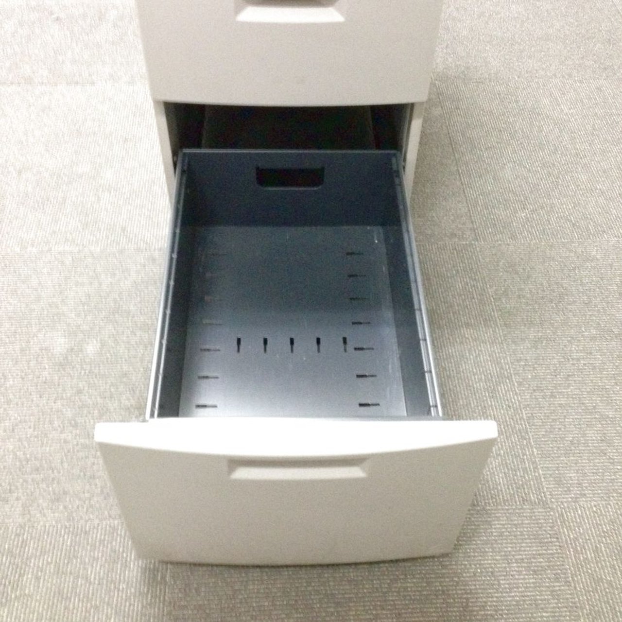 1段目には文房具、2段目には私物、3段目にはA4ファイルなどが収納可能です!