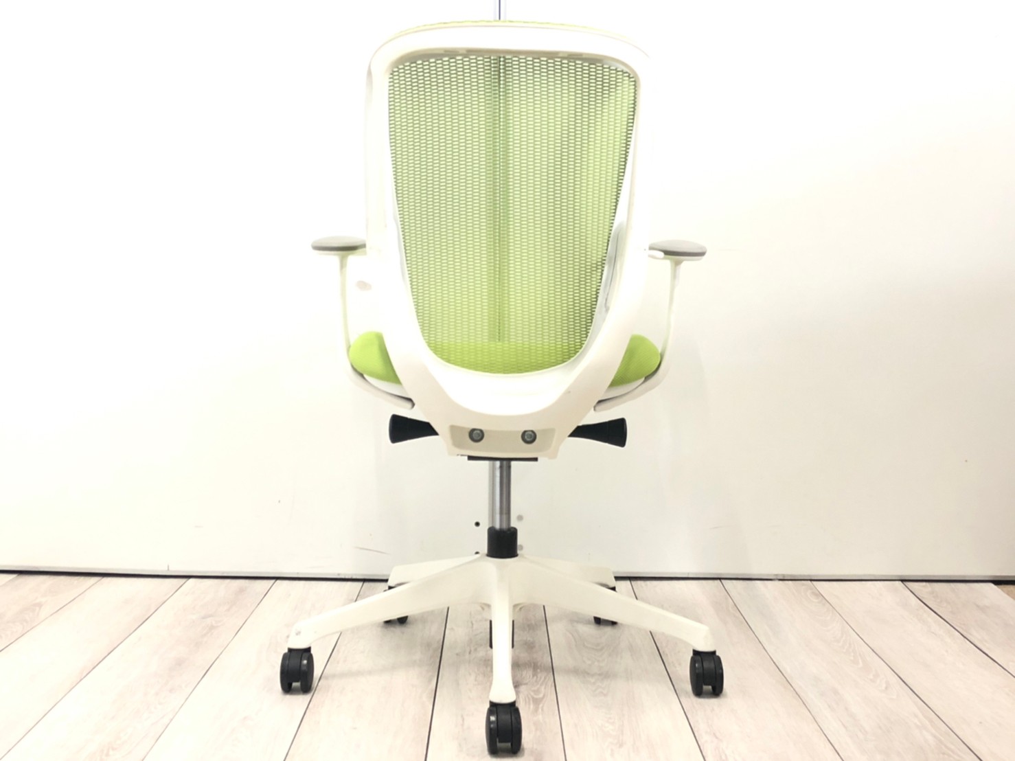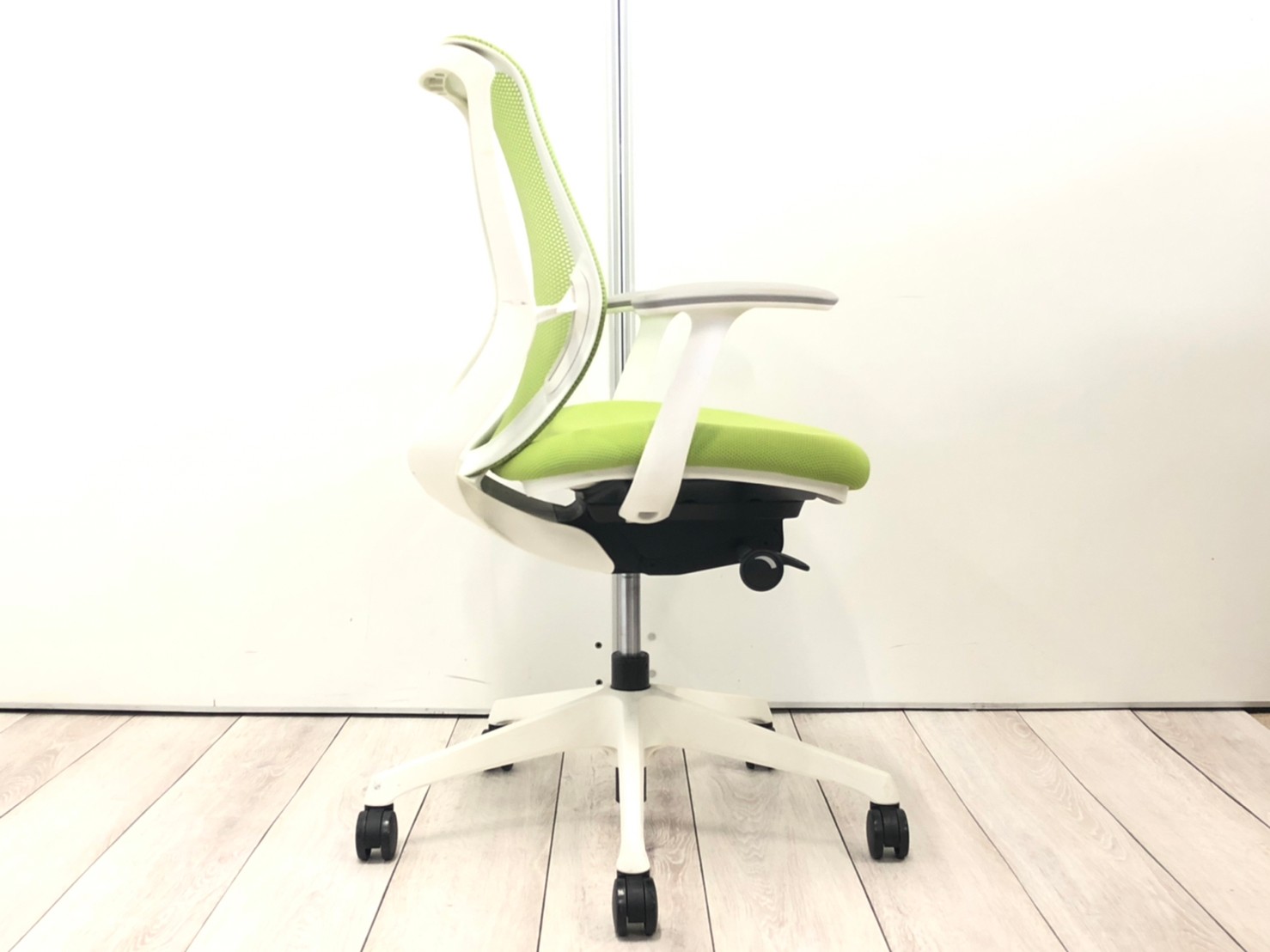 【ロット入荷!】年式新しめ!鮮やかなカラーとメッシュ仕様!前傾機能付きで優秀※固定肘掛け付き【J8】■オカムラ/シルフィー/ライムグリーンサーキュラーバリューCO2削減量の算出について