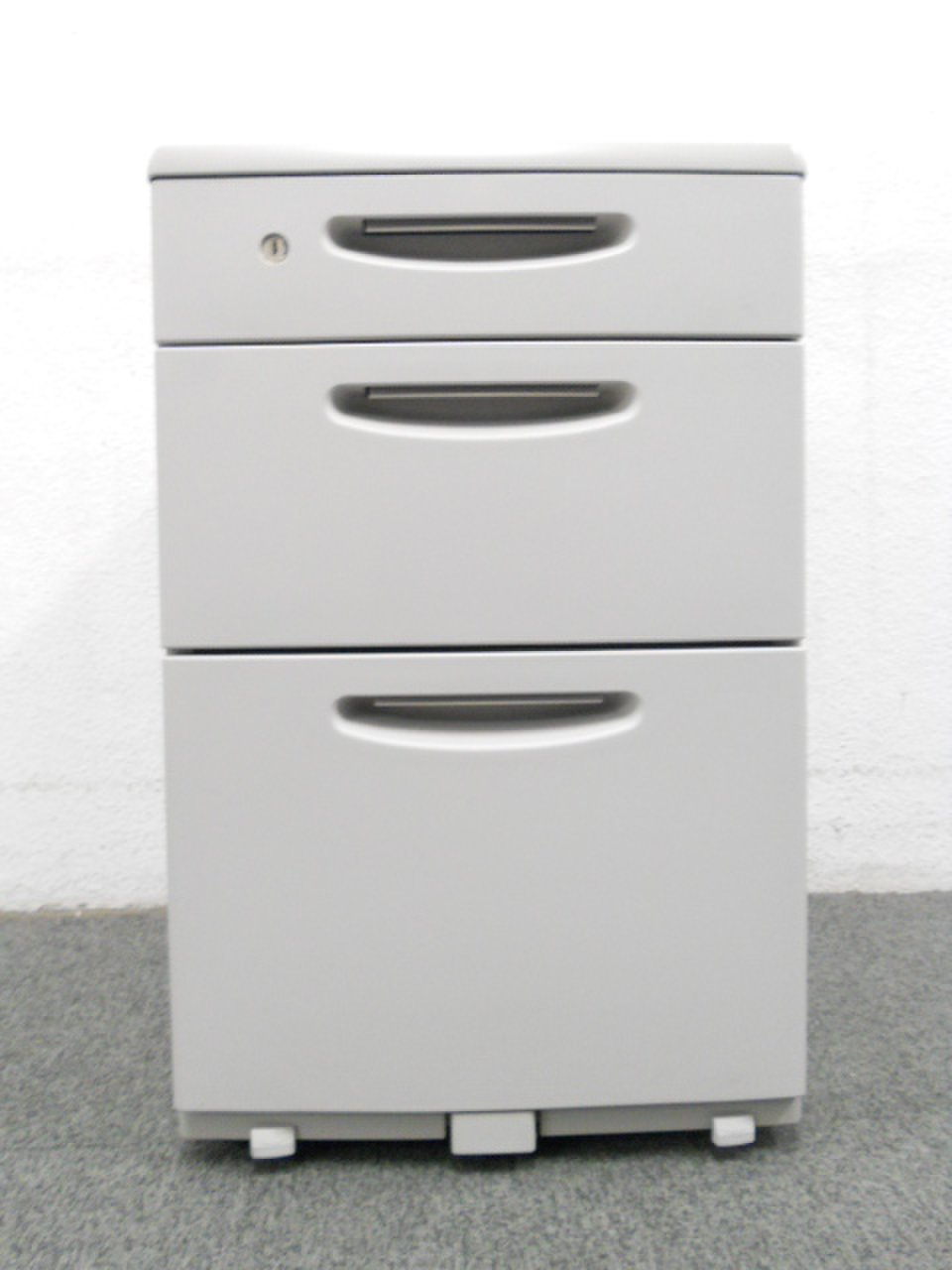 【天板の把手とキャスターで移動がらくらく!シンプルでスタンダードな3段ワゴン!】■オカムラ(okamura)製 SDシリーズ 3段ワゴン デスクインワゴン H610㎜ ■1段目引き出し浅め ■ニューグレー ■シリンダー錠【2506】弊社使用欄【A01019125】