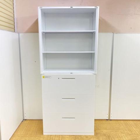 定番シリーズ!収納量抜群!観音開き+引き出しタイプのキャビネットセット! ■内田洋行/HS/ホワイト