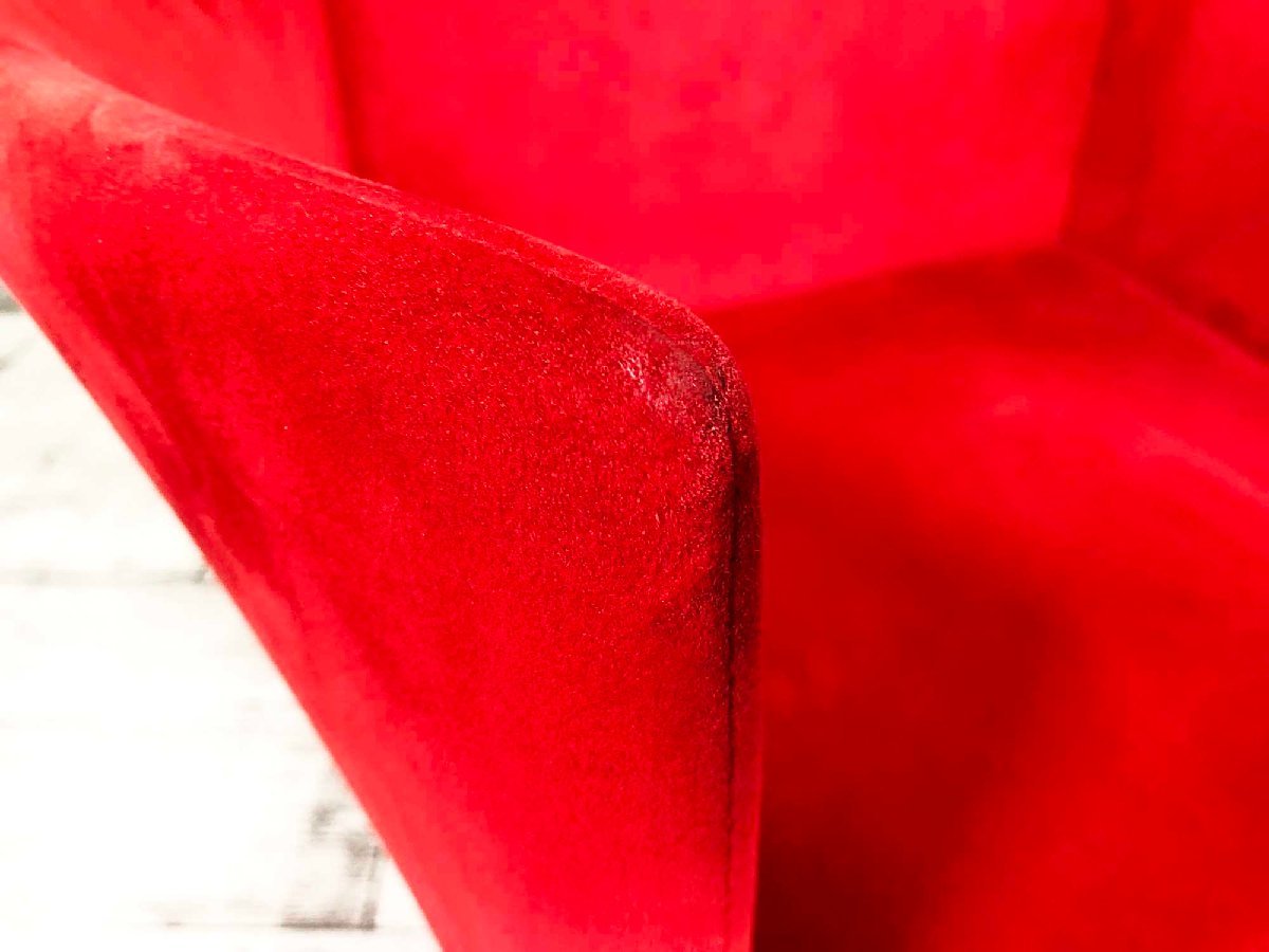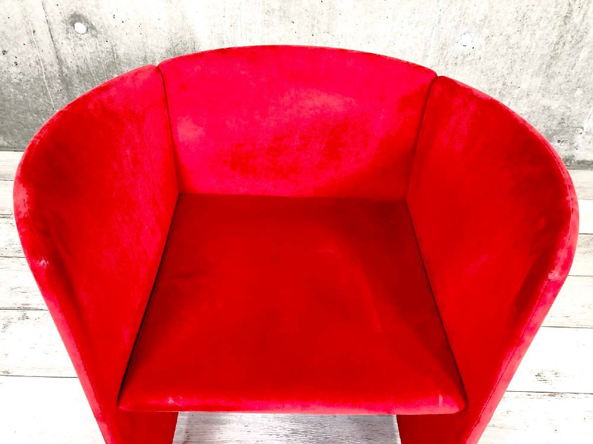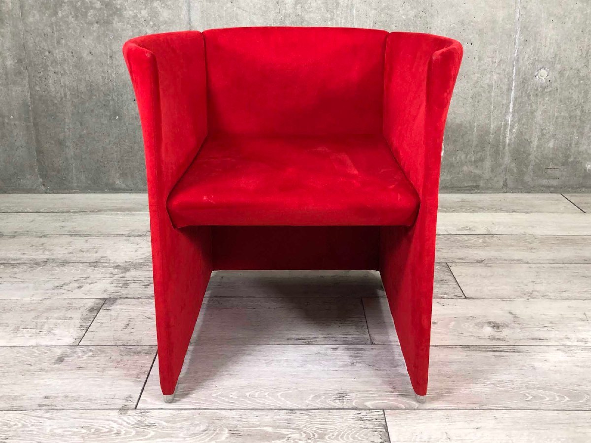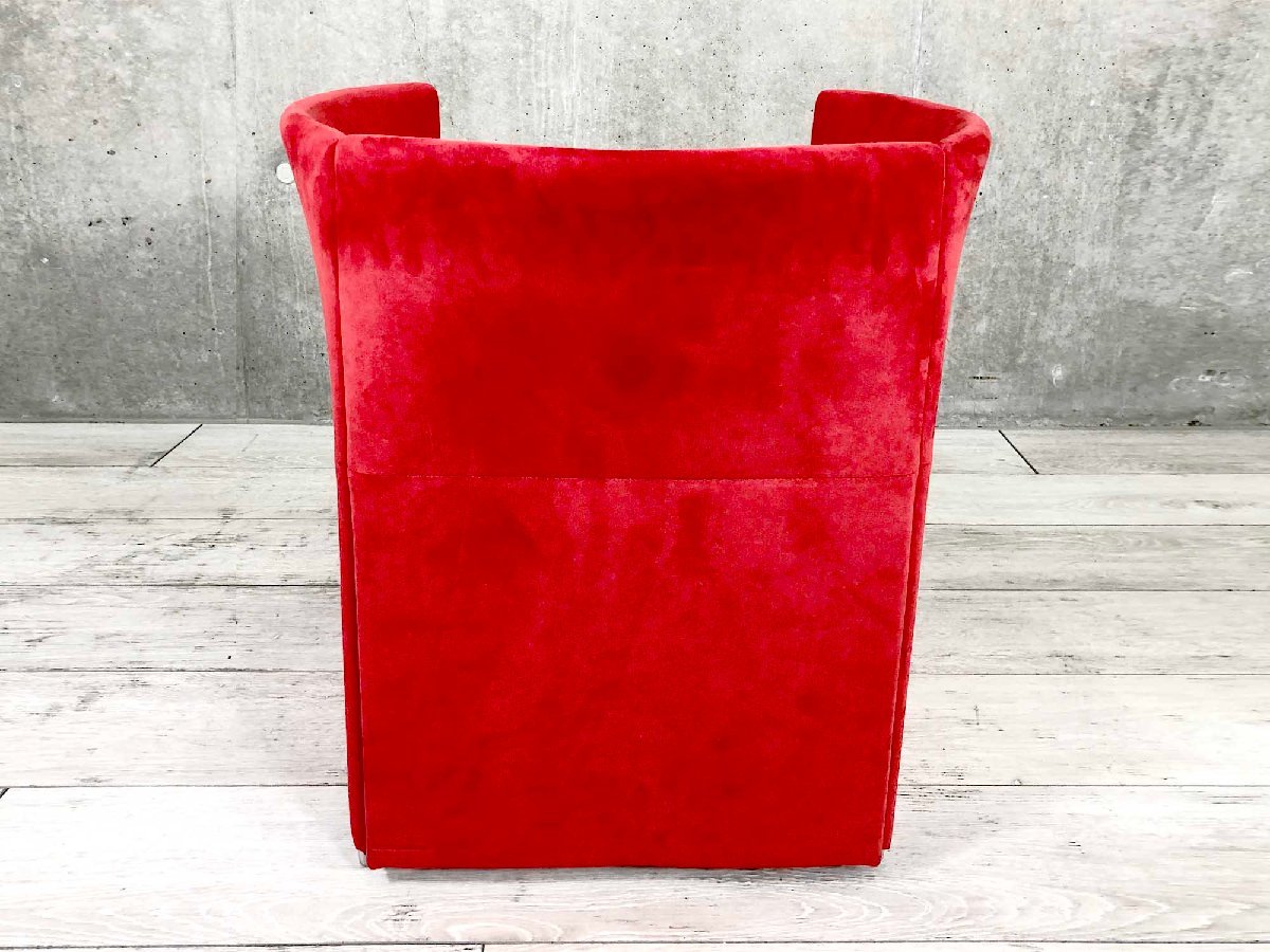 建築家、黒川雅之のデザインによるチェアです。上から見ると円描く、独特の形状の背もたれとアームがデザインのポイント。