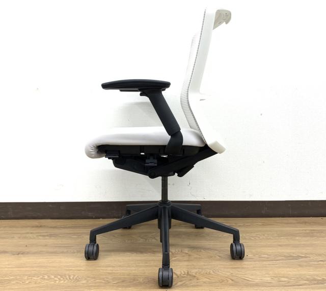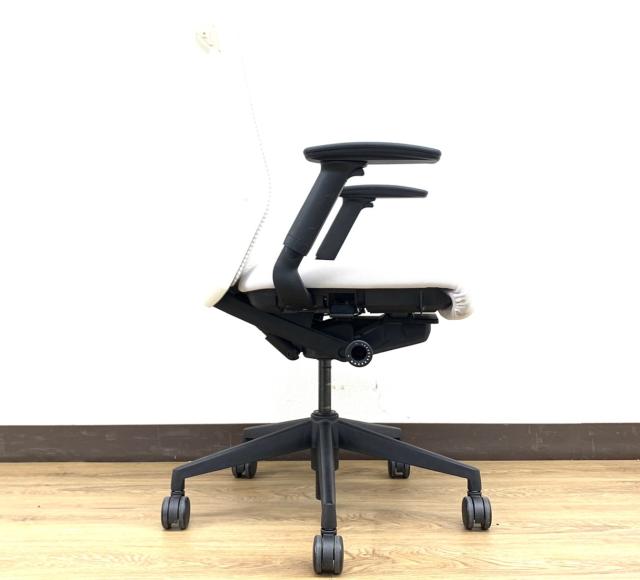 また、個人的にオススメなのは『フルアジャスタブル肘』というアーム部分が斜め前に伸びていくタイプの肘置きを搭載したモデルです。高さを上げれば上げるほどパッドが前方に迫り出していくので、デスクワークの際にちょうど肘を置きたい場所に肘置きがきます。これがとても快適なので、ぜひ一度お試しいただきたいです!*エルフィチェアの肘パーツはフルアジャスタブル肘の他に、固定肘、アジャスタブル肘などがあります。