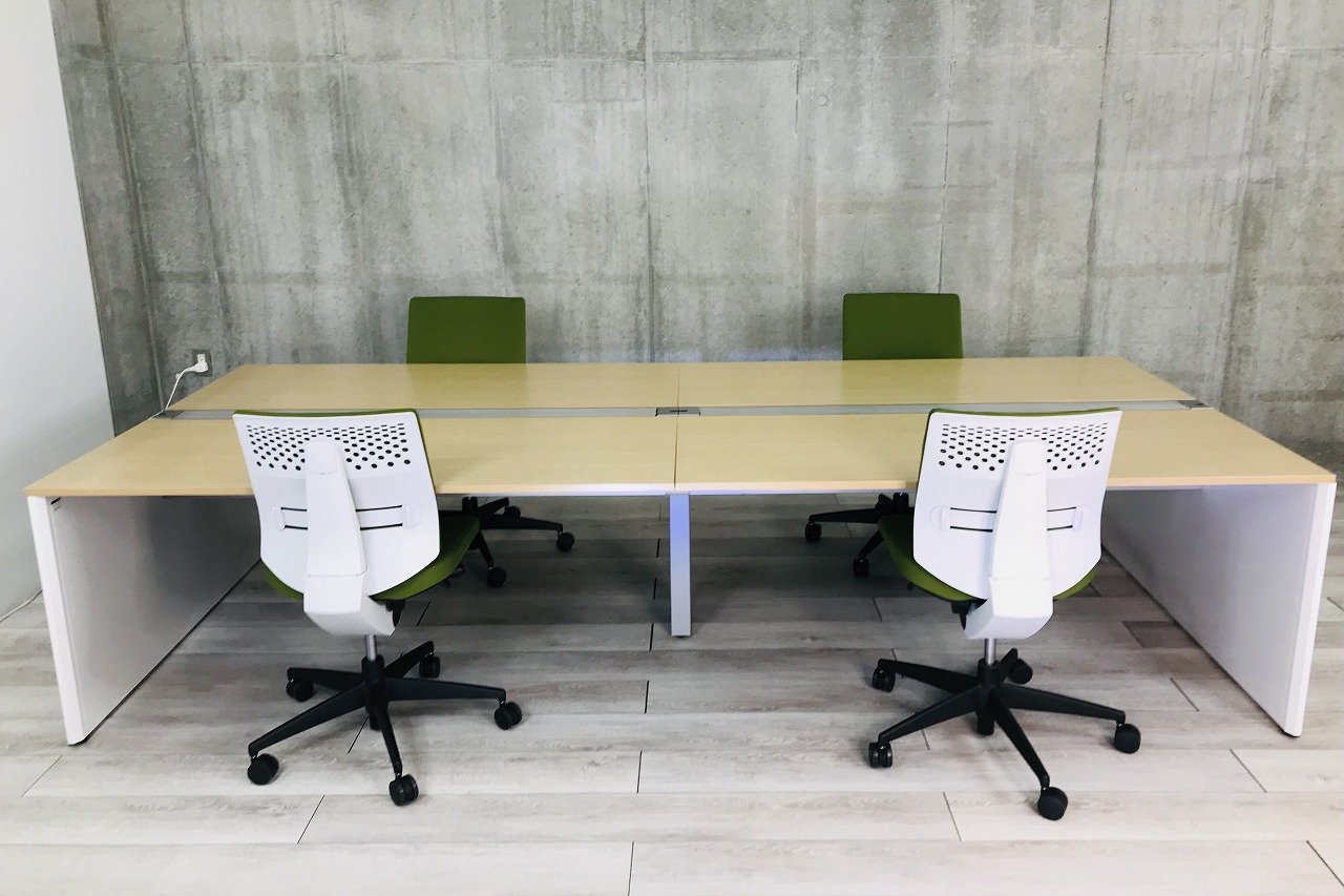 イトーキ製・『インターリンク』入荷!!【W3200】タイプ!4人使用で、一人使用サイズがw1600で使用でき広々お使い頂けます。解放感とコミュニケーションをアップさせてくれるデザイン!4人一組でチーム席としてのご使用も!!オシャレなオフィスに!!弊社使用欄【98】【脚ホワイト】【FSW】- 全店共通商品
