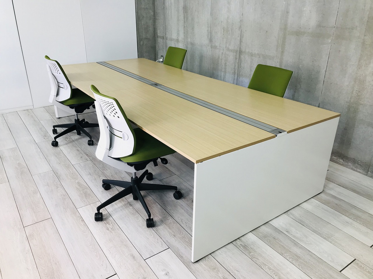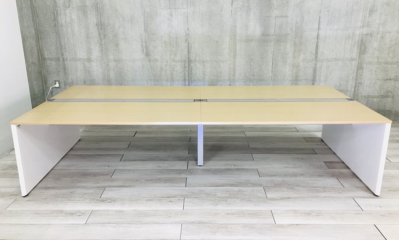 【倉庫在庫品】幅3200mm 新時代デスクシステム⇒インターリンク(Inter Link)天板ナチュラル&エンド脚ホワイト◆イトーキ製