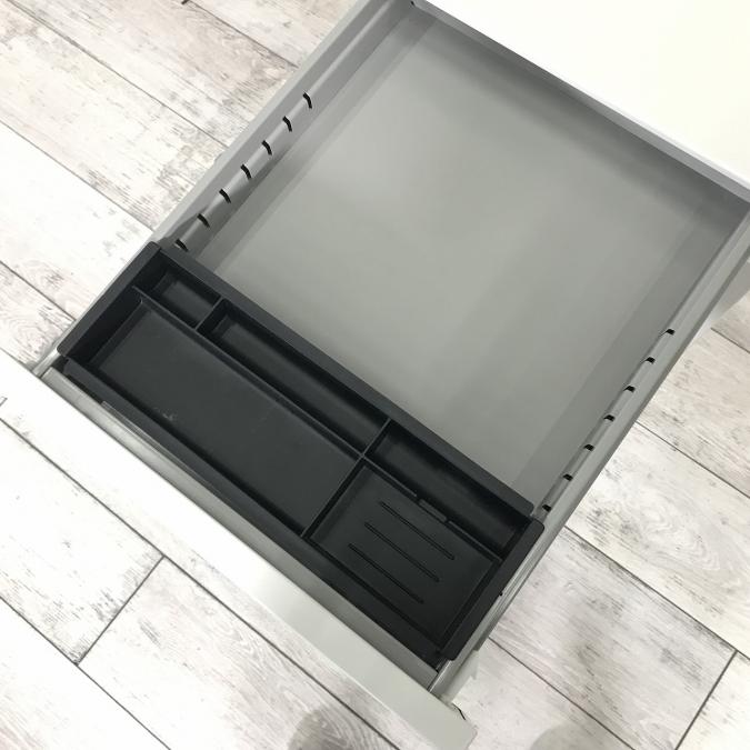 上段にはペントレー引出しタイプで、文房具などの収納に最適。