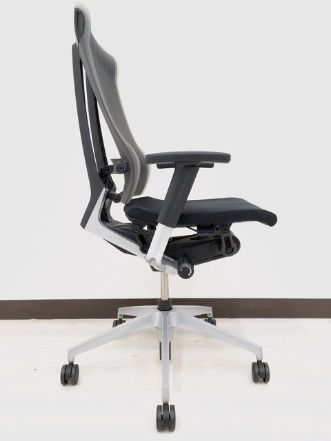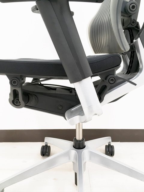 一番の特長は、着座時にチェアがピタっと体にフィットしてくれることです。 人がチェアの座り心地を調節するのではなく、チェアが人に合わせて動くのです!着座時に座面が沈み込みながら後方へスライドし、それと同時に背もたれの腰部分が前にせり出し、「ずっと座っていたくなる」と言われるほどの座り心地に調節してくれます。それを実現しているのが、A.L.S(アクティブ・ランバー・サポート)機構とP.S.S(パッシブ・スライド・シート)機構です。 さらに、背もたれにかかる体圧を徹底的に分析して作られた絶妙なカーブが、常に腰をサポートしつつ背骨のラインに沿ってくれます。