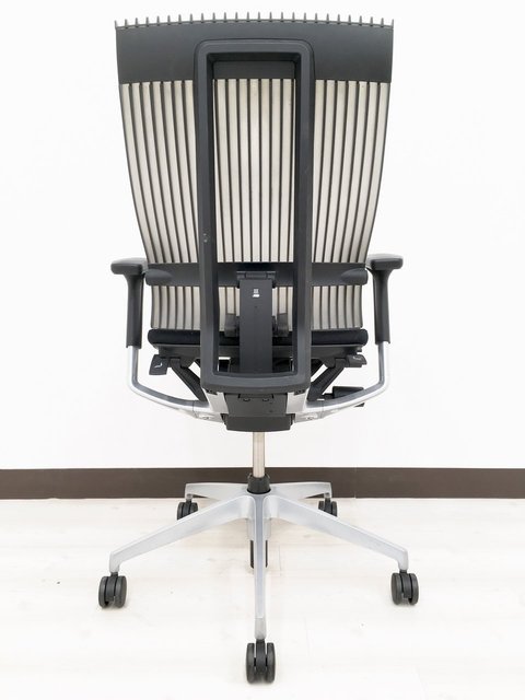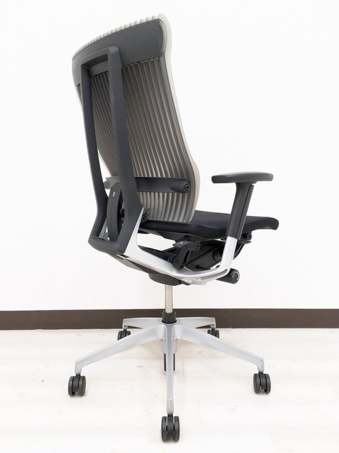 見た目は少し硬そうに見えるエラストマー素材ですが、座ってみると程よいしなり具合のやわらかな座り心地で、背中が痛くなるようなことはまるでありません。面ではなく線で支えることで、背面の通気性の良さは抜群です。