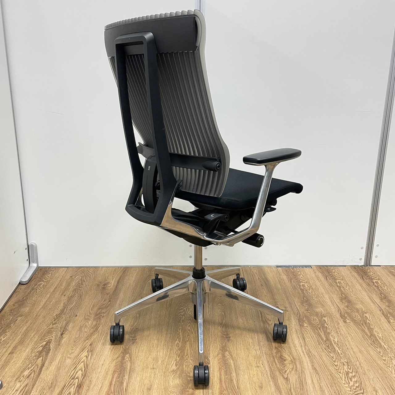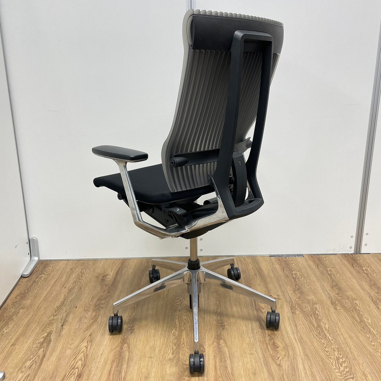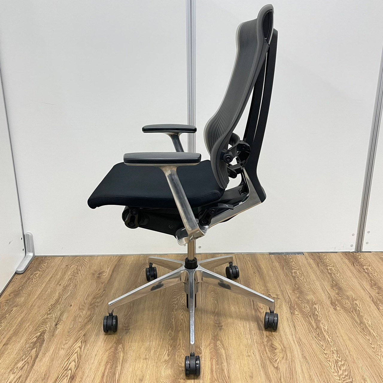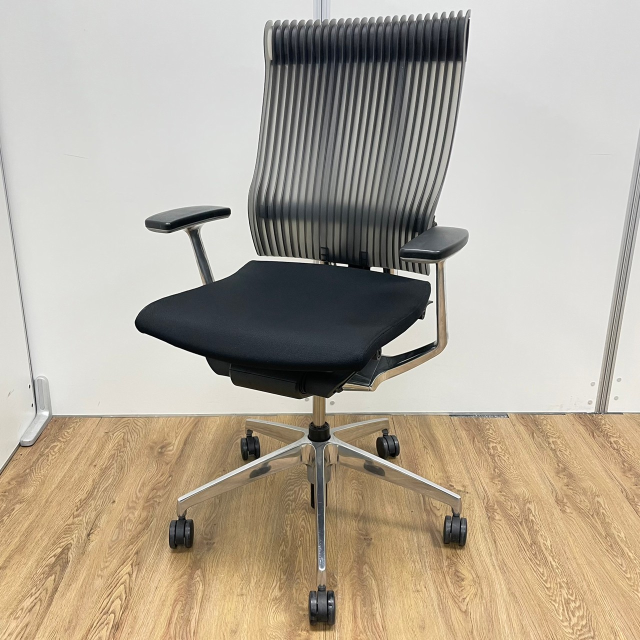 イトーキ製 スピーナシリーズ 背もたれスモークグレー 肘付きハイバックチェア!!※脚アルミミラー- 京都東寺店